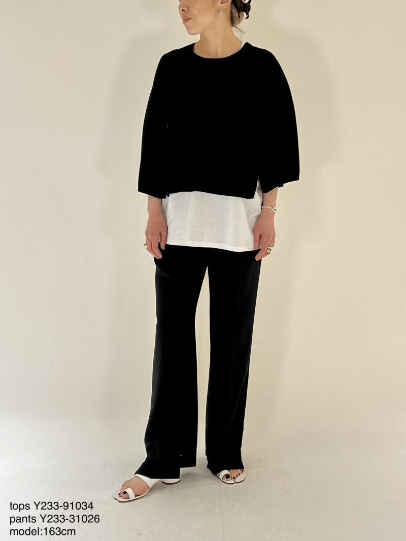 ハイゲージのしっかりと詰まった編地できれいな印象の素材感です。