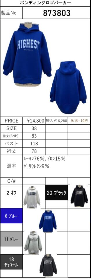 【 ayane 】ボンディングロゴパーカー(873803)