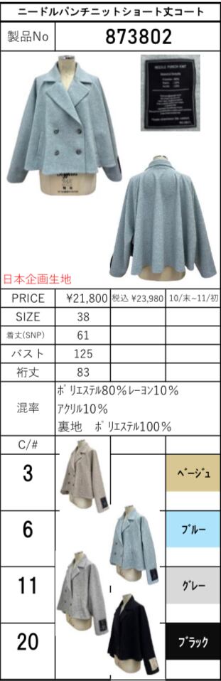 数量限定☆予約販売【 ayane 】ニードルパンチニットショート丈コート(873802)11月上旬お届け