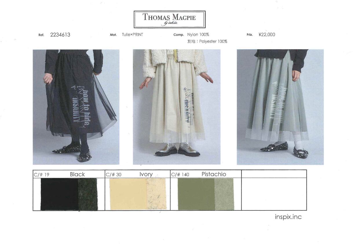 ★予約販売【 THOMAS MAGPIE 】logo print over tulle skirt (2234613) 11月お届け