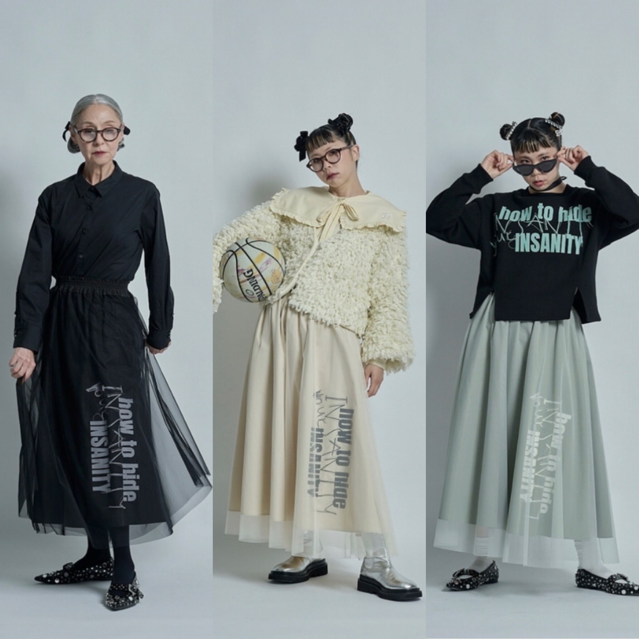 ■ logo print over tulle skirt