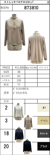 予約販売【 ayane 】ストレッチベロアロゴロンT(873810)9月下旬お届け