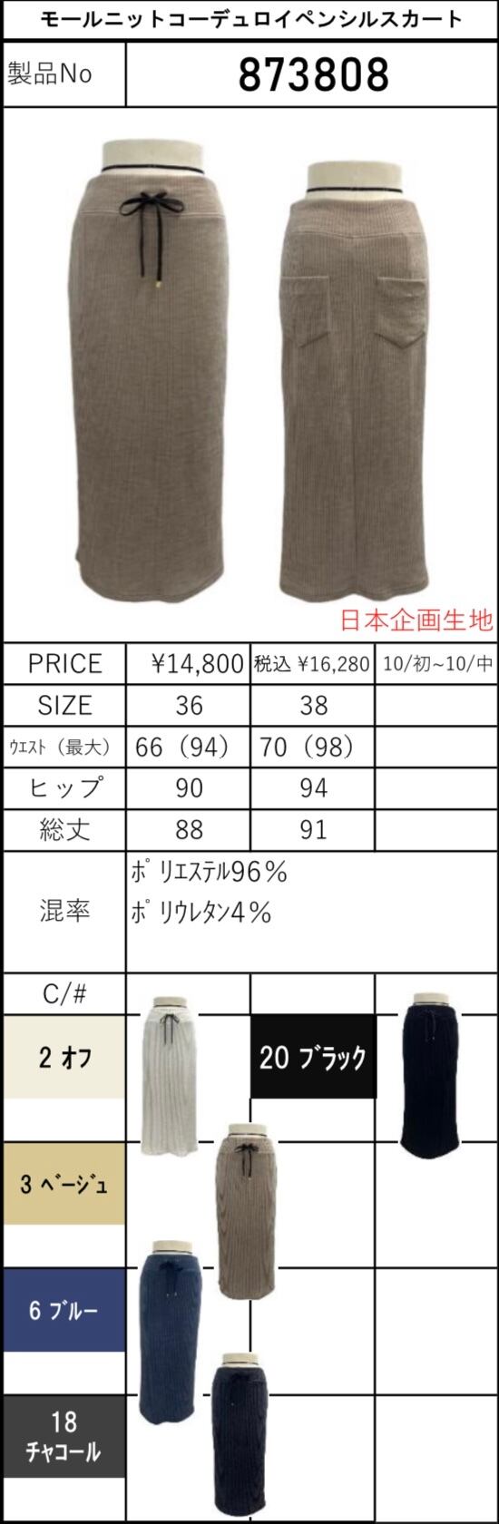 予約販売【 ayane 】モールニットコーデュロイペンシルスカート(873808)10月中旬お届け
