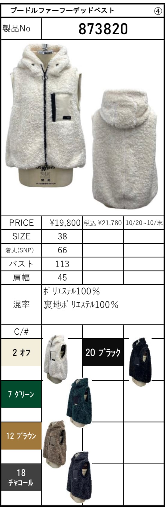 【 ayane 】 プードルファーフーデッドベスト(873820)
