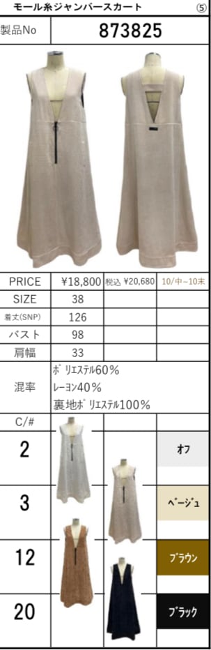 メーカー受注書に記載されている、デザイナー指示のサイズ・カラー表記を掲載しております。