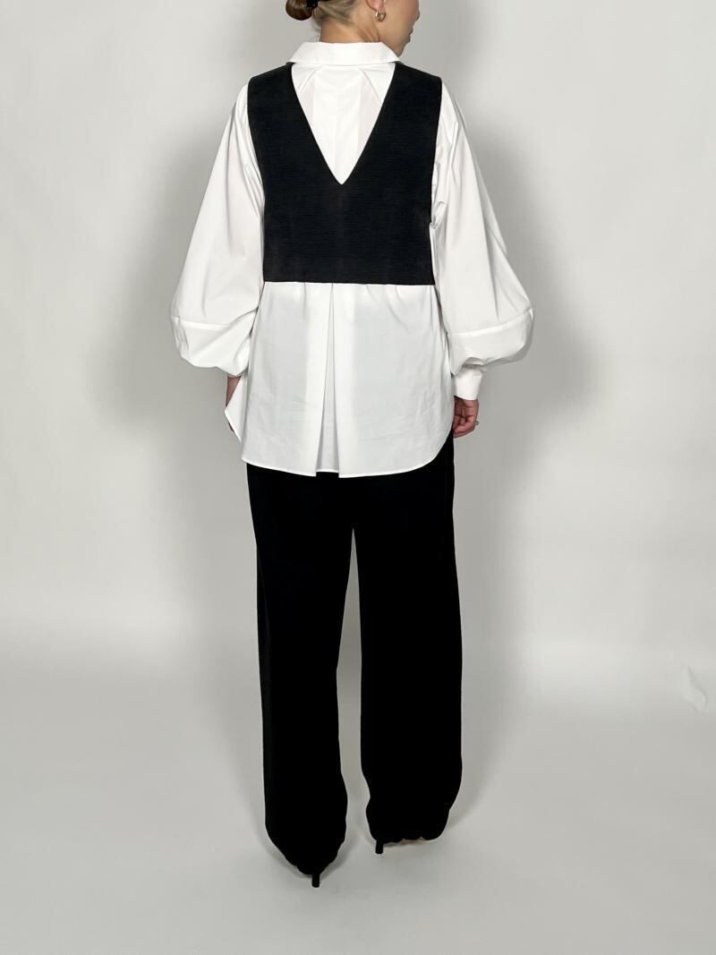 ルーズシャツや、袖ボリュームのブラウス合わせなどで取り入れやすい1枚です。