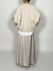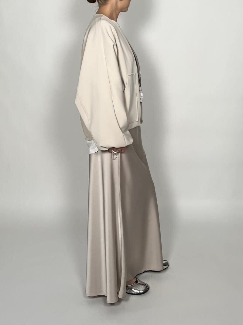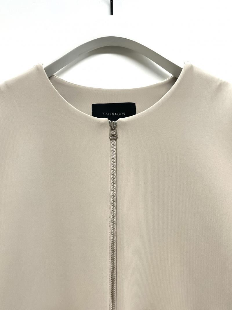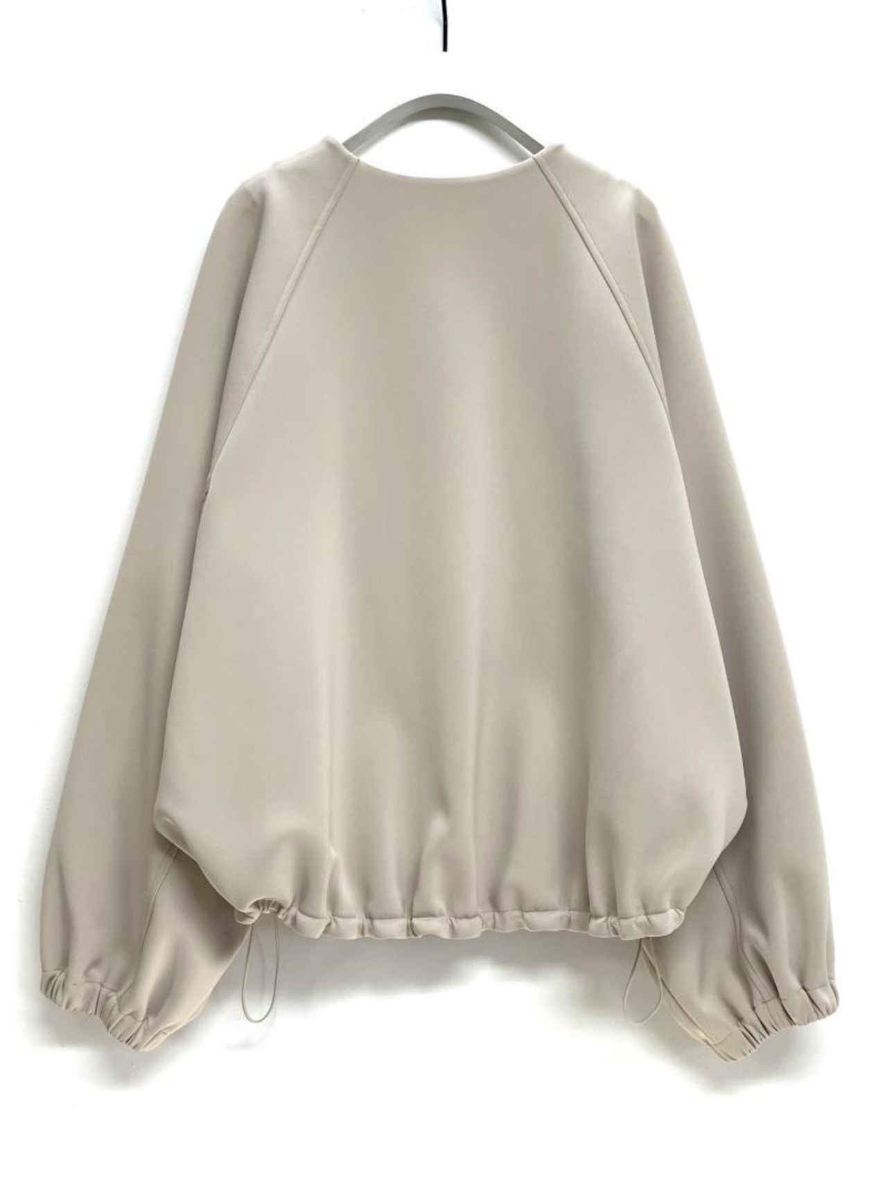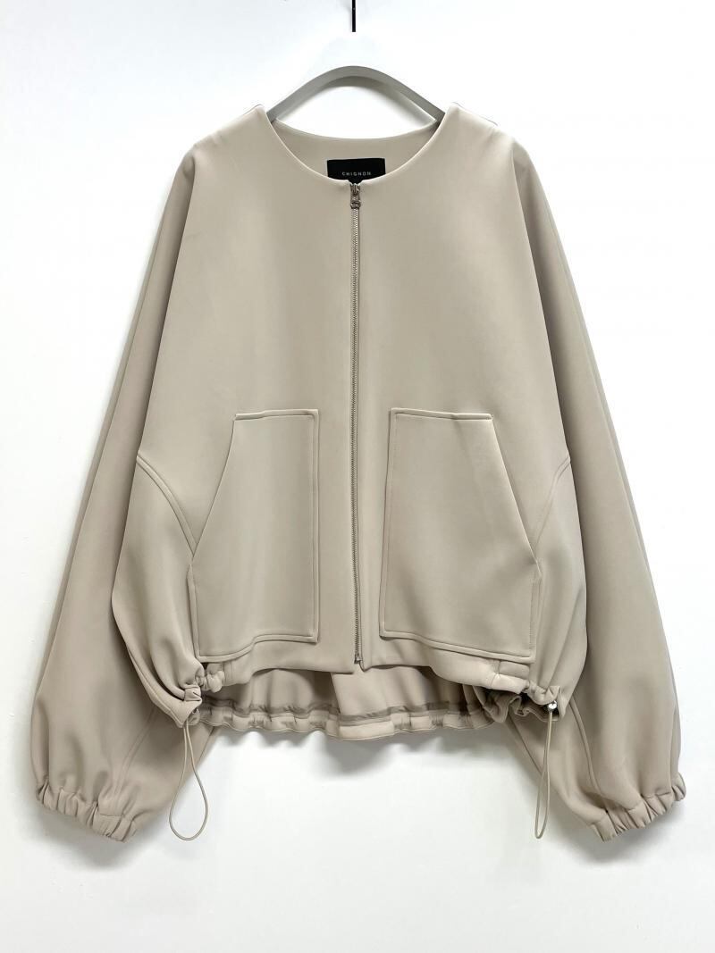 全体的にミニマルなデザインにまとめ、ノーカラーで女性らしいクリーンな印象に仕上げました。裾はドロスト仕様によりシルエット変化も楽しめるアイテムです。