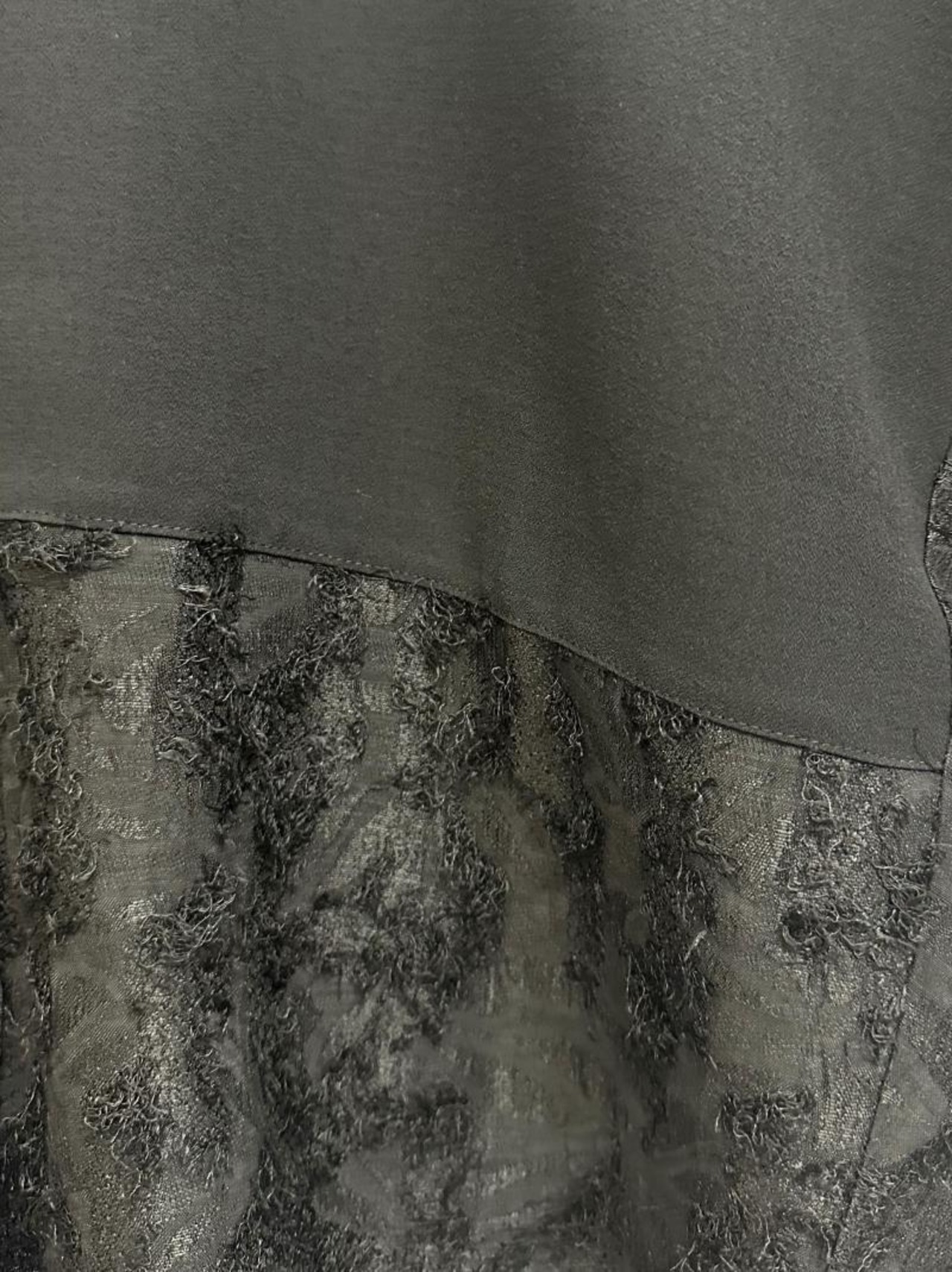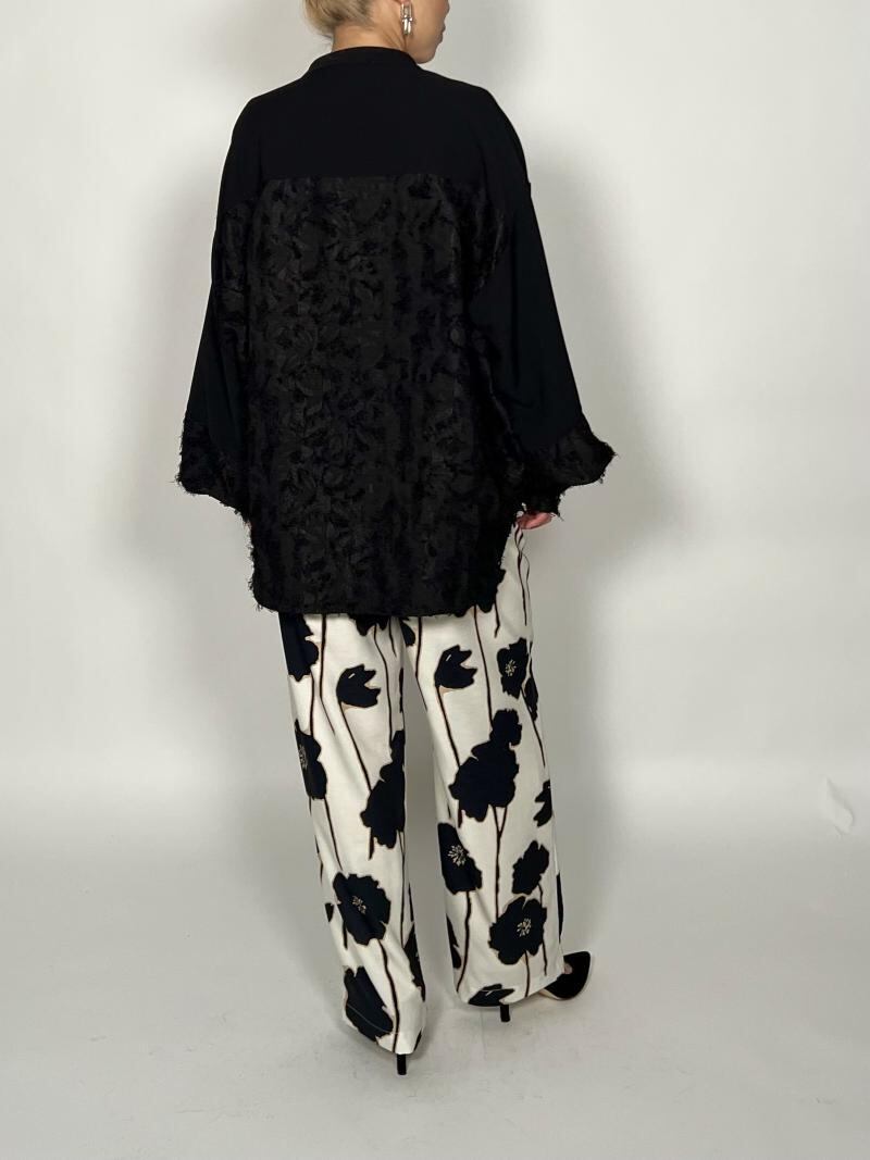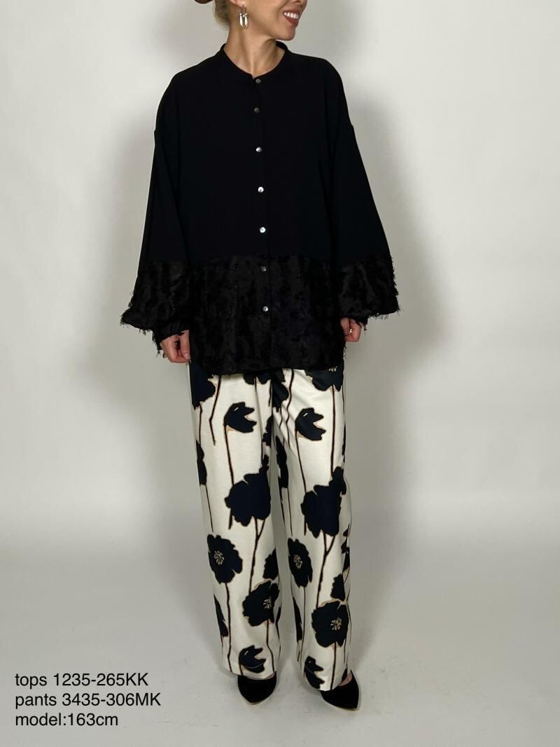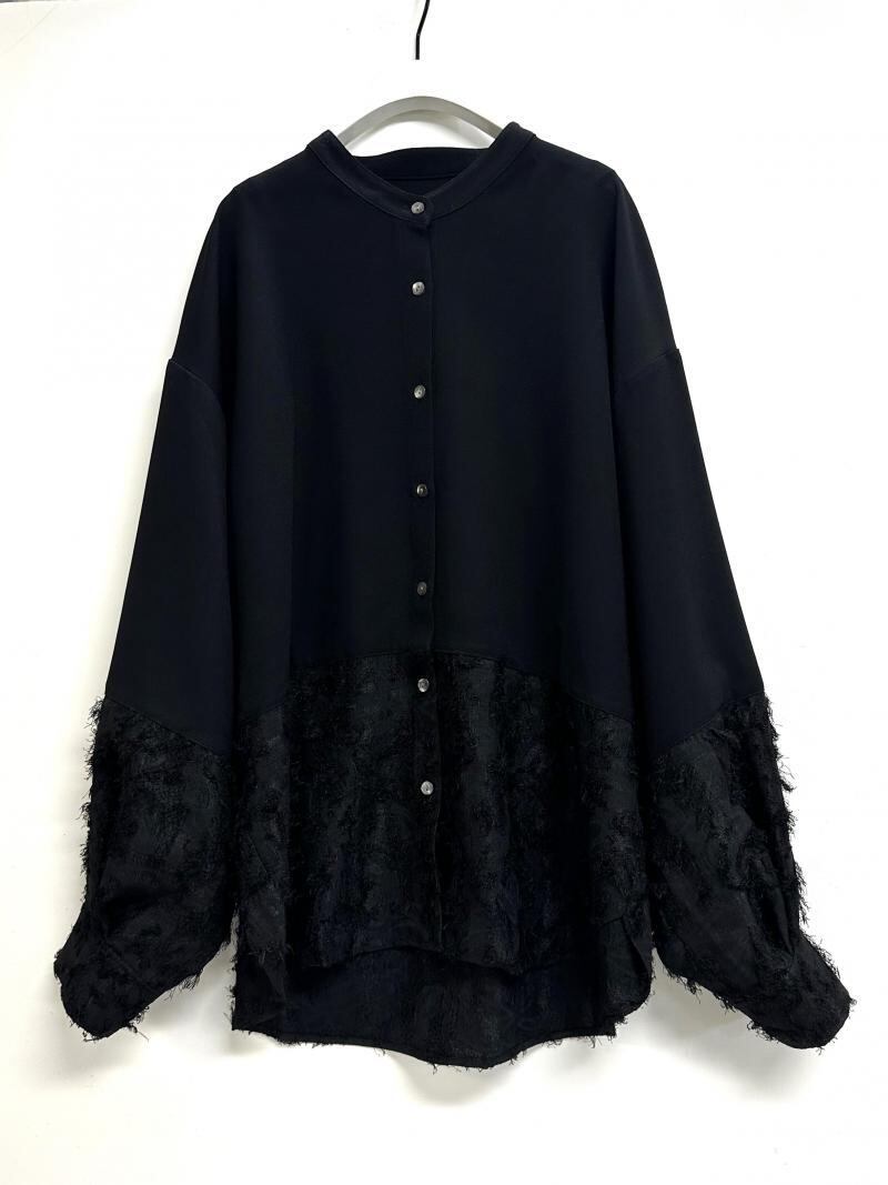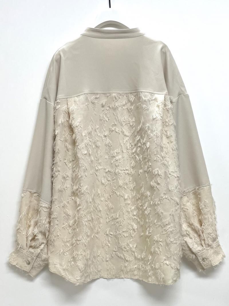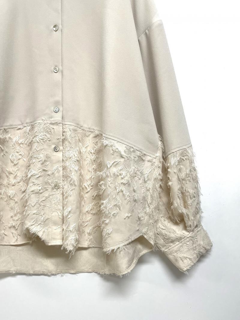 カットジャガード素材と異素材使いのドッキングブラウスです。