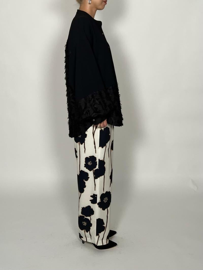 繊細で気品あふれるカットジャガードを要所に異素材使いを施すことでカジュアルに仕上げ、日常使いしやすいデザインに。1枚でもレイヤードスタイルもおすすめ。コーディネートを華やかに演出してくれる1着です。