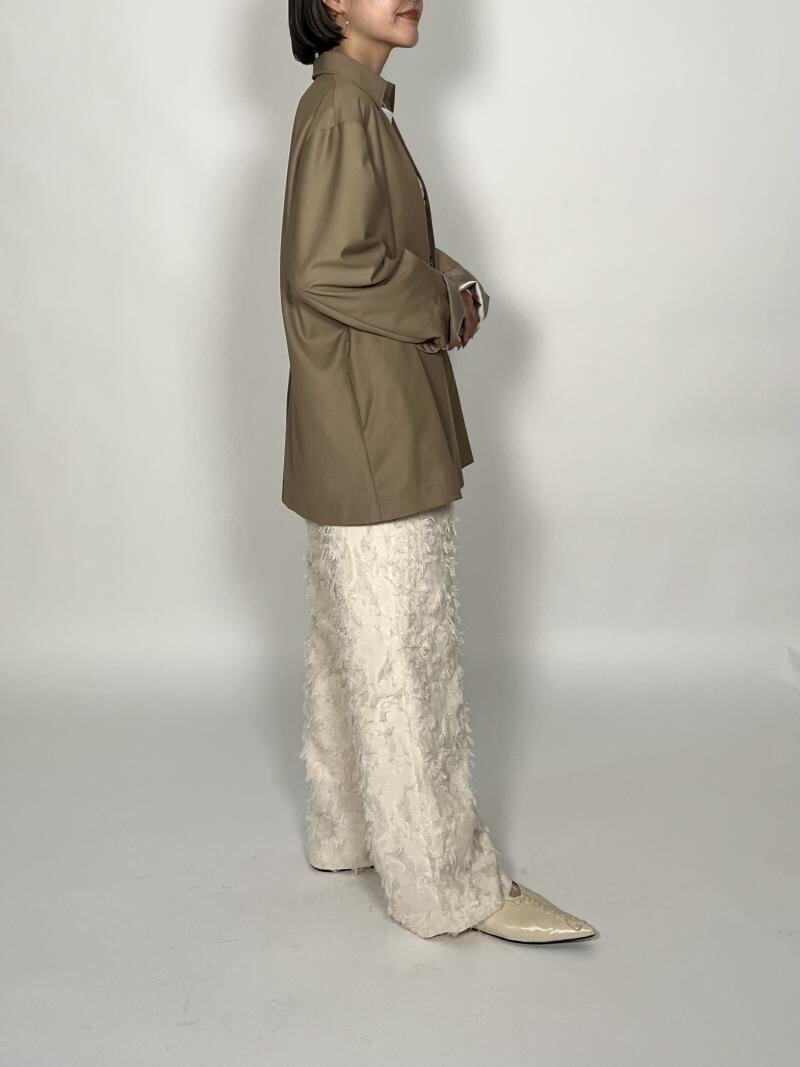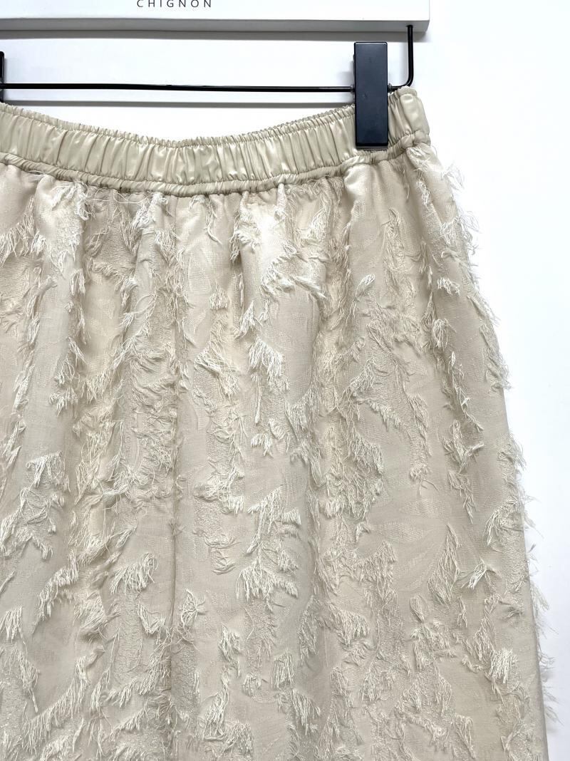 ウエストはイージーに仕上げることでカジュアルダウンさせ、着用しやすいアイテムに仕上げました。またぐるりゴム仕様によりストレスフリーで快適な着心地を実現。コーディネートを華やかに演出してくれる1着です。