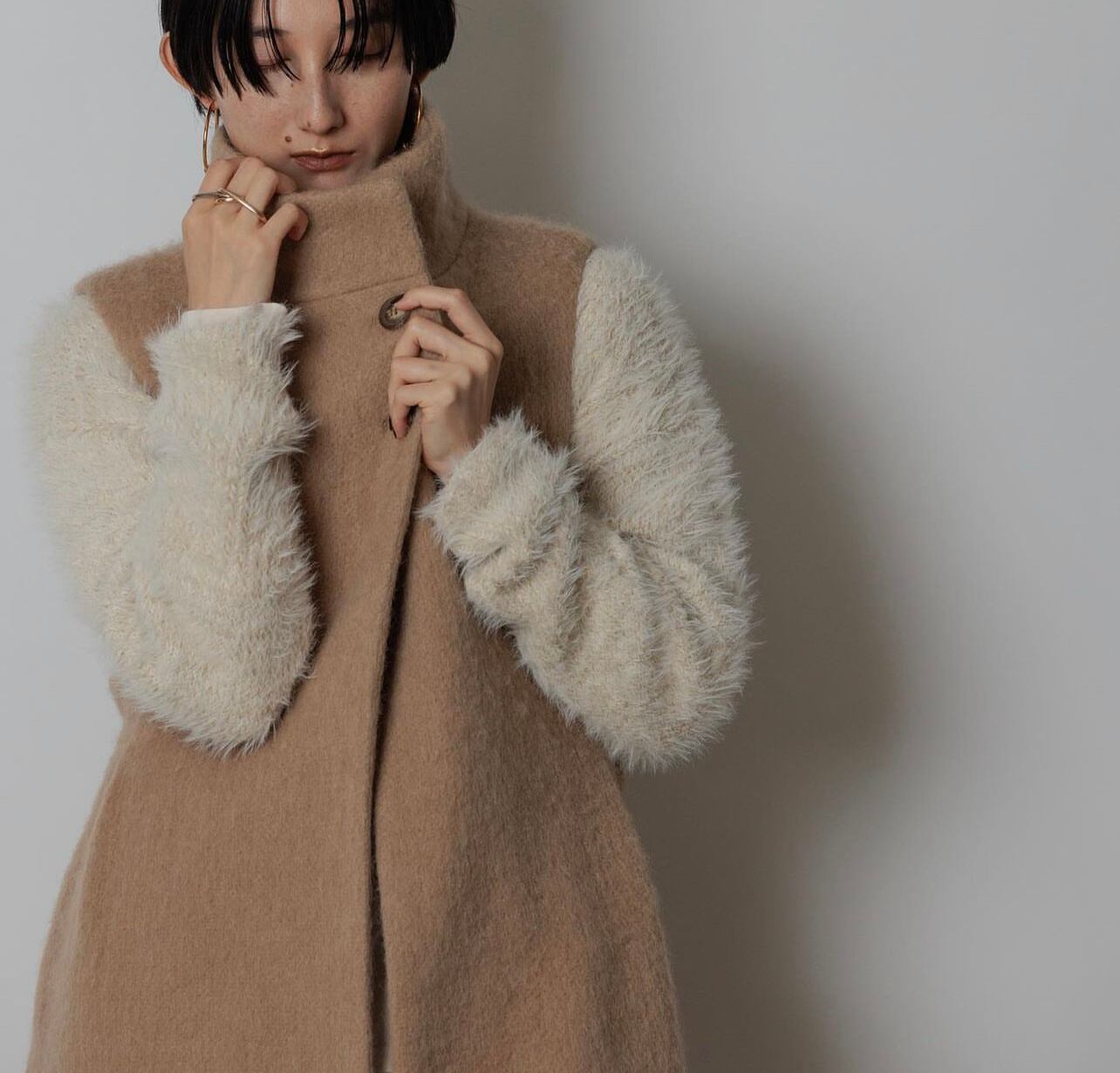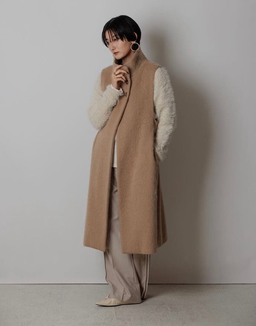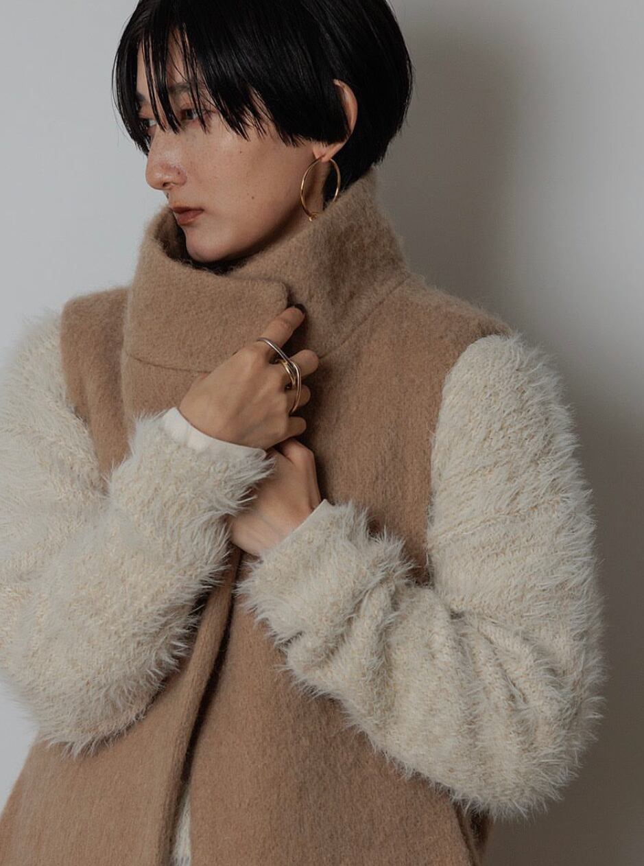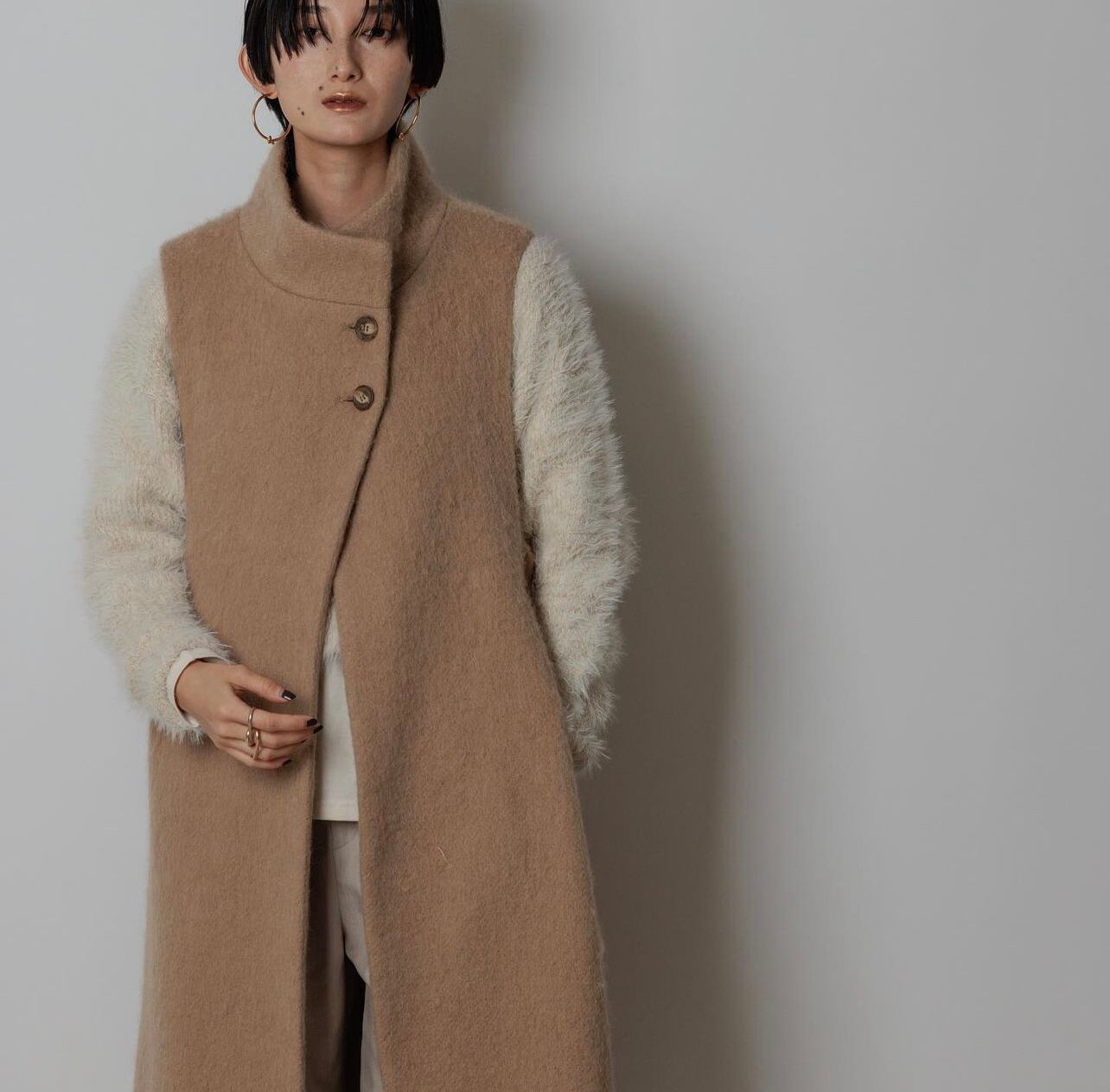 贅沢なシャギー素材ですので、ニットの上でもアウターの上でも様になり、