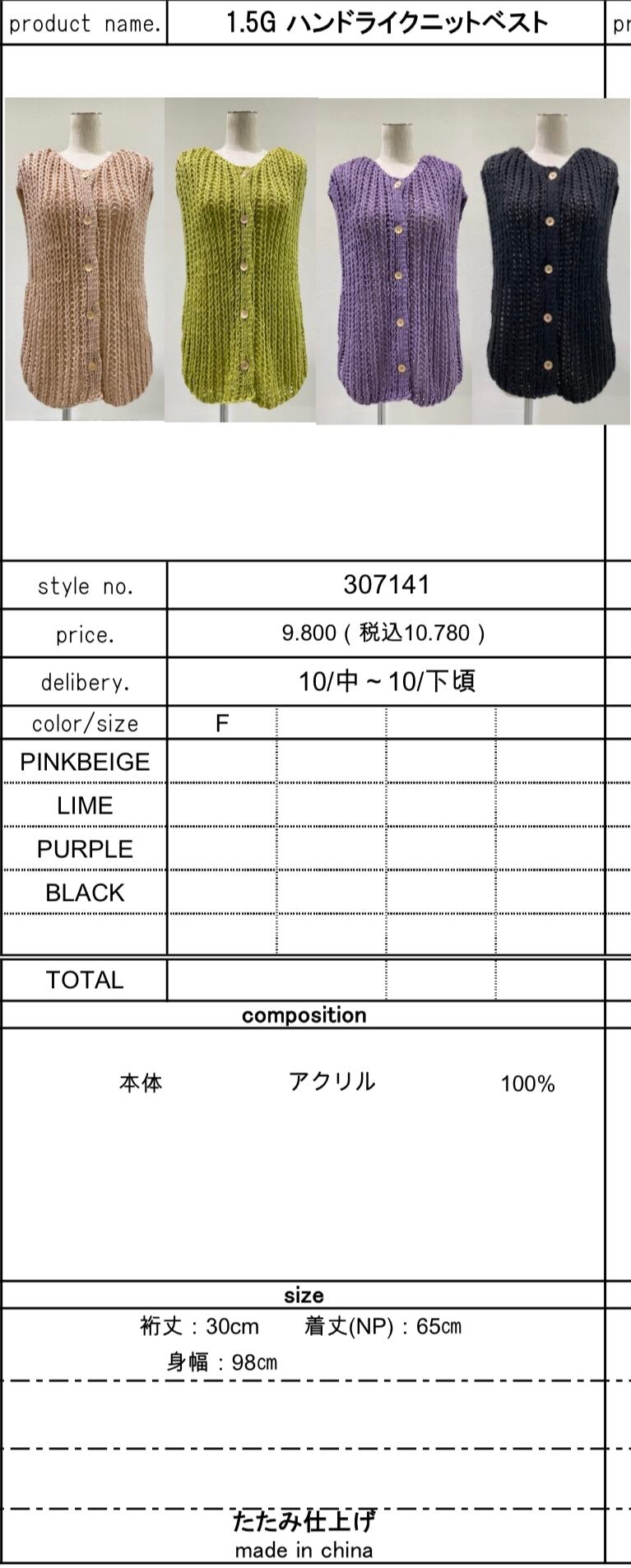 1.5G ハンドライクニットベスト