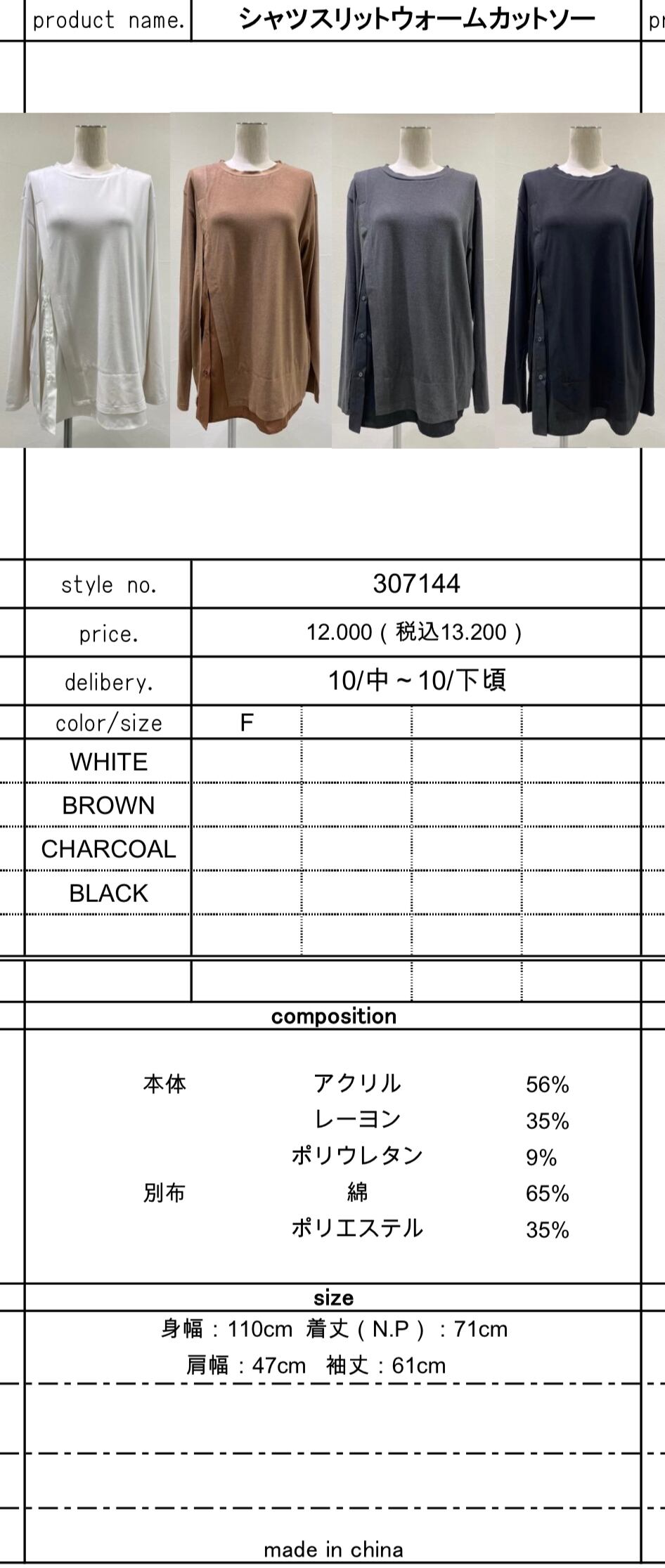 【 CYAN TOKYO 】シャツスリットウォームカットソー (307144)