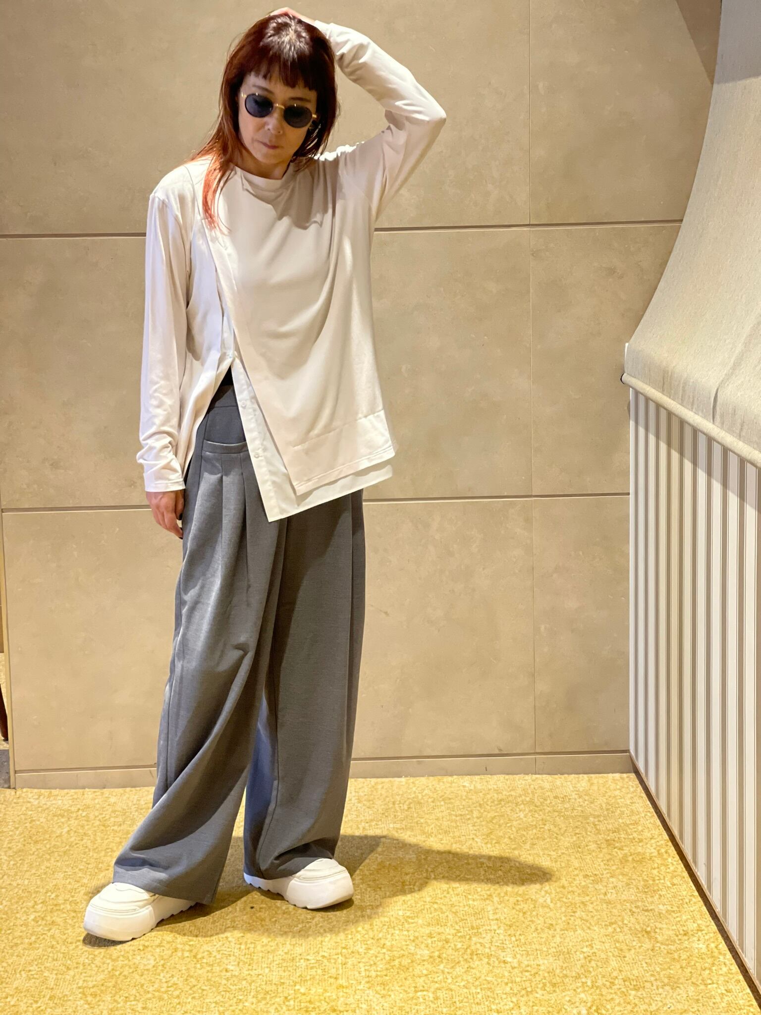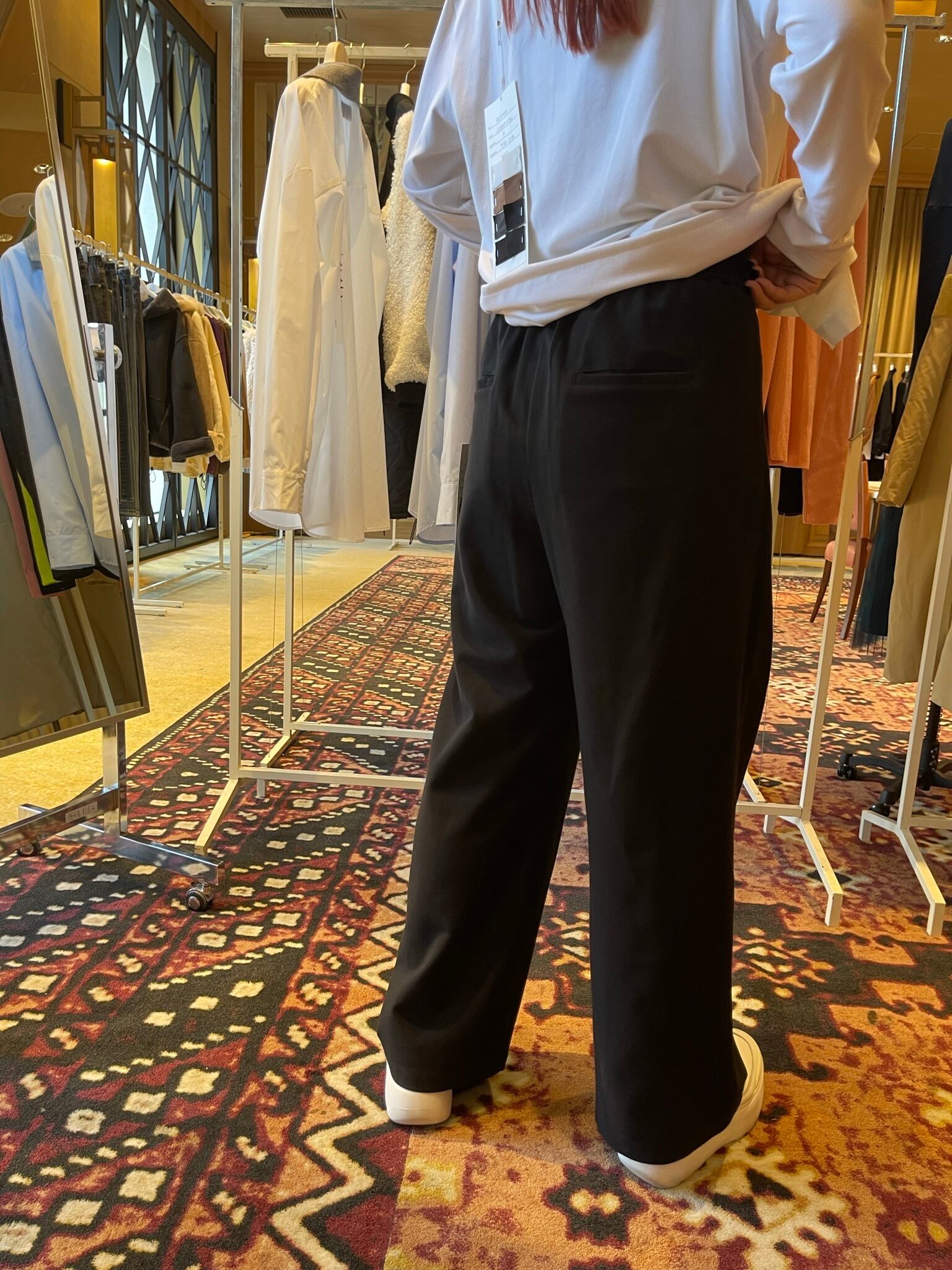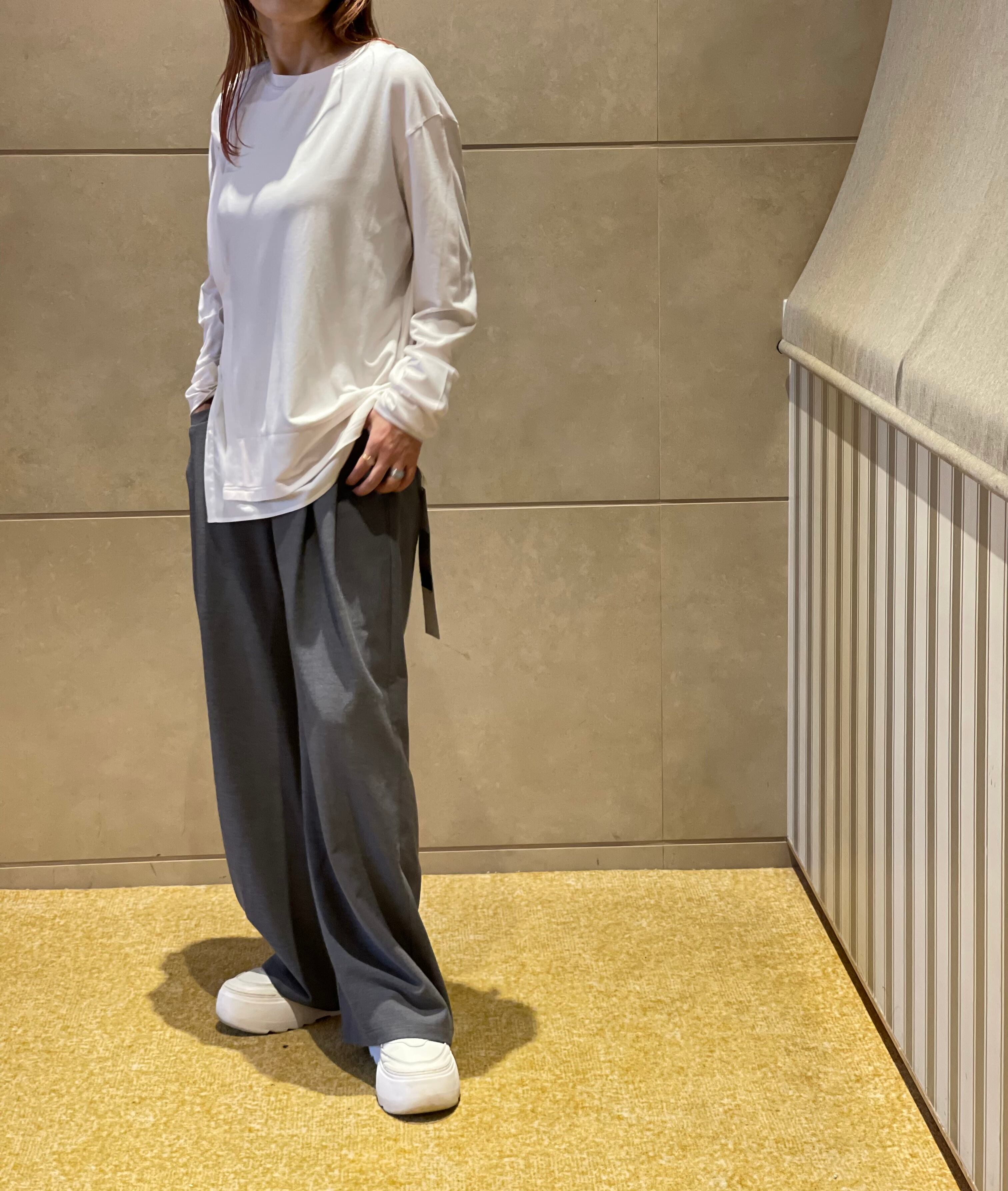 ゆったり目のウエスト感で綺麗めにもカジュアルにも使えるお勧めパンツです!