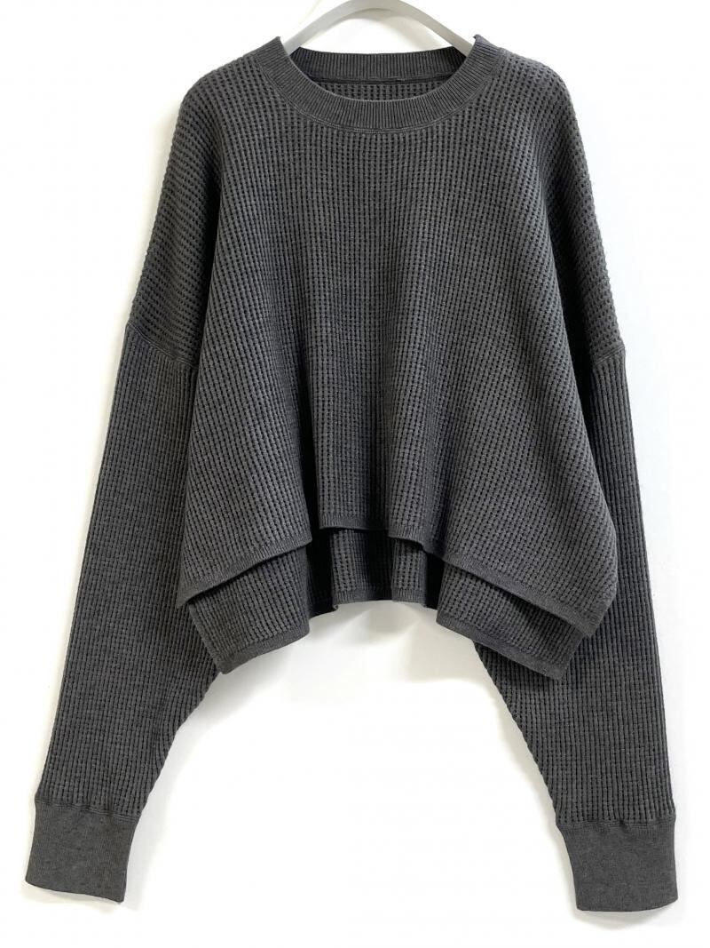 ニットのふくらみのある温かみと、カットソーの気軽さの丁度良い所をとったアイテムですなので、ロングシーズン着られる1枚です。