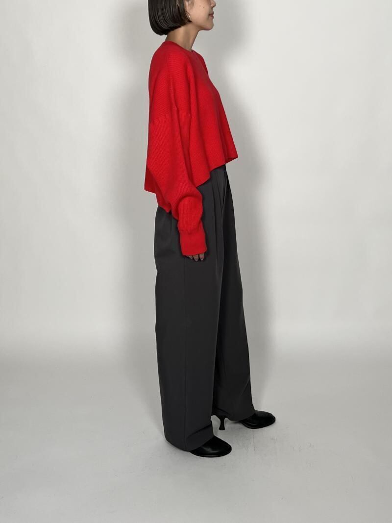 トレンドのショート丈ですが、一枚でも着られる短すぎない丈設定にしています。