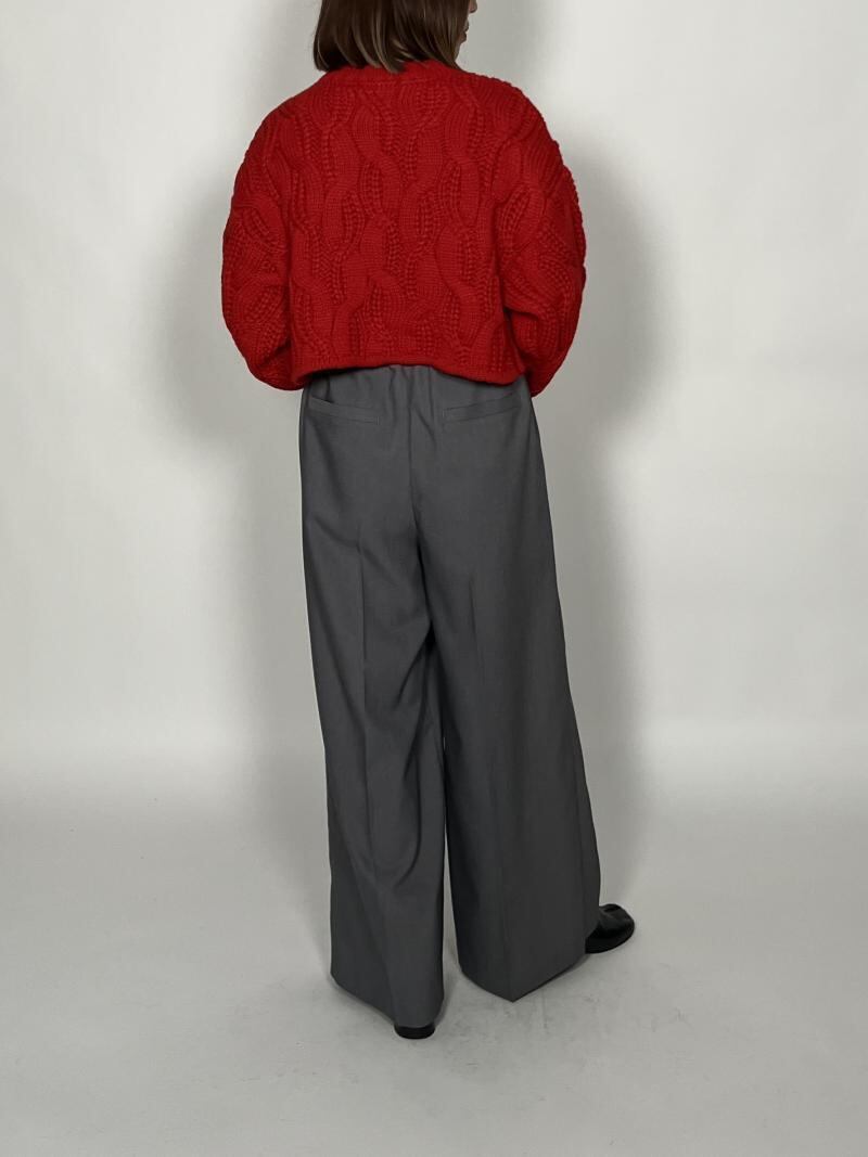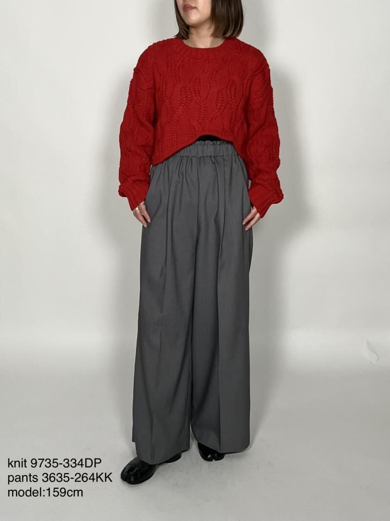 カーブの効いたヘムラインが特徴のケーブルニットです。