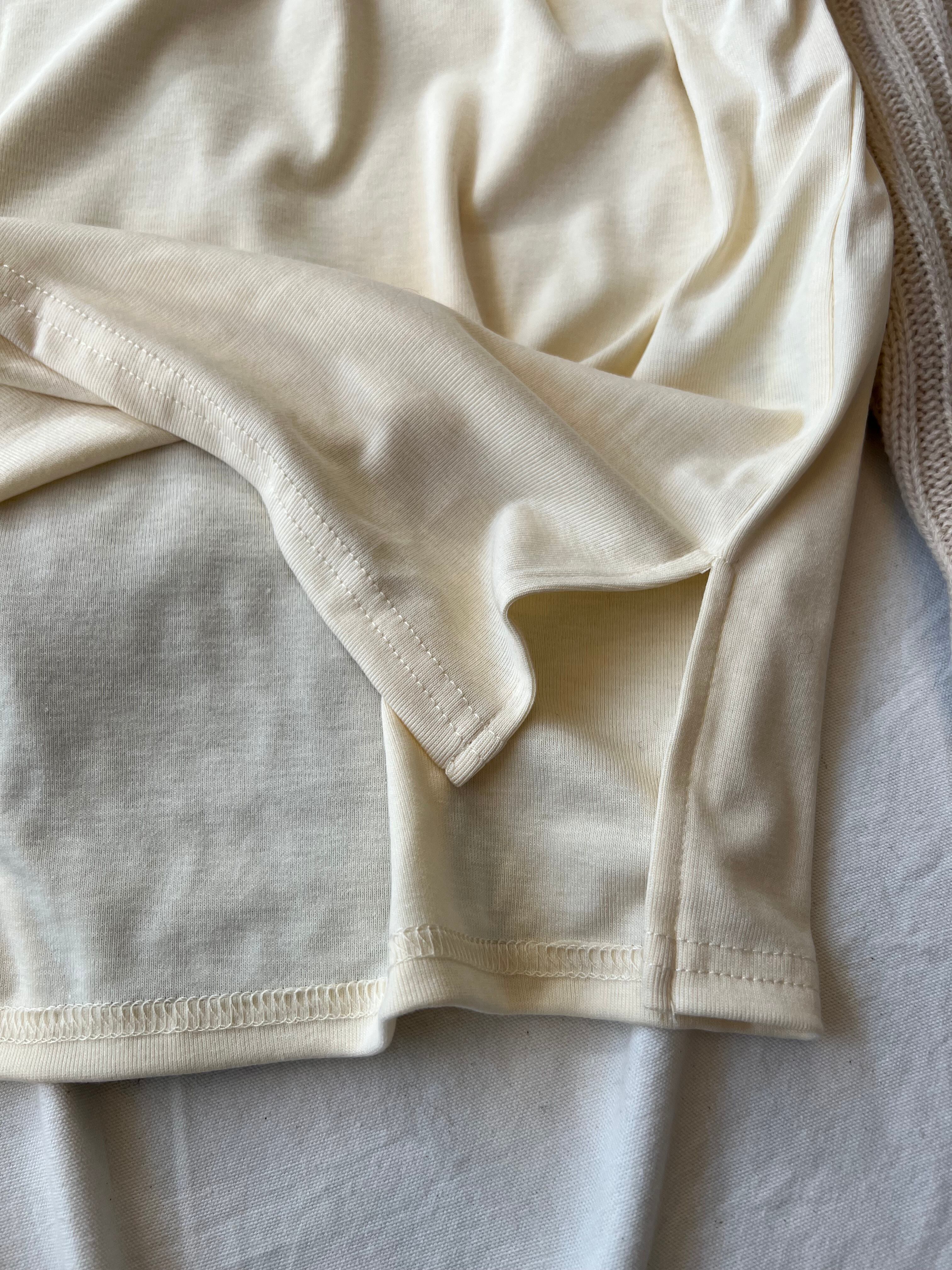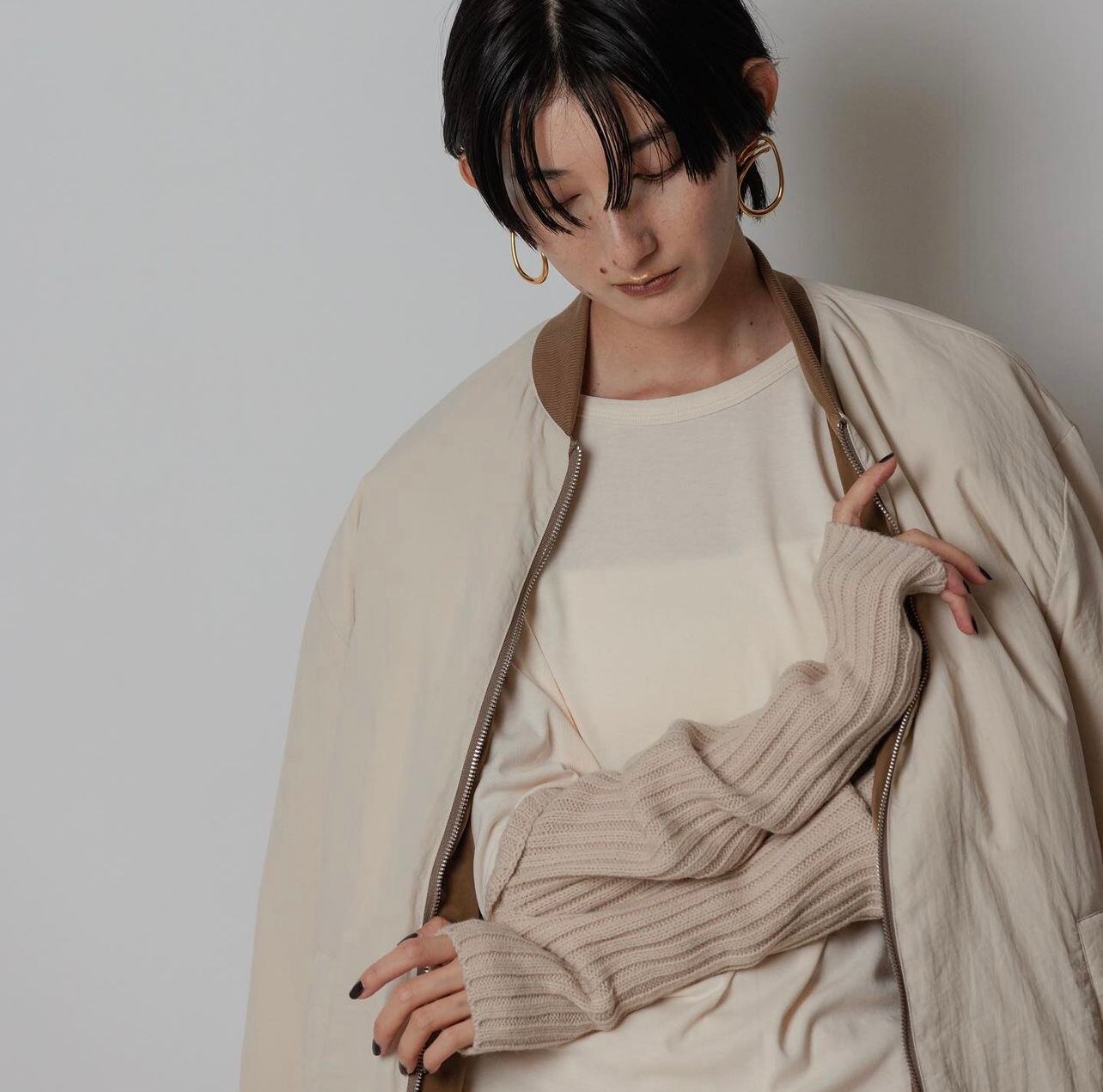 レイヤードして袖口からリブ袖を出してトレンド感のあるスタイリングもおすすめになります。