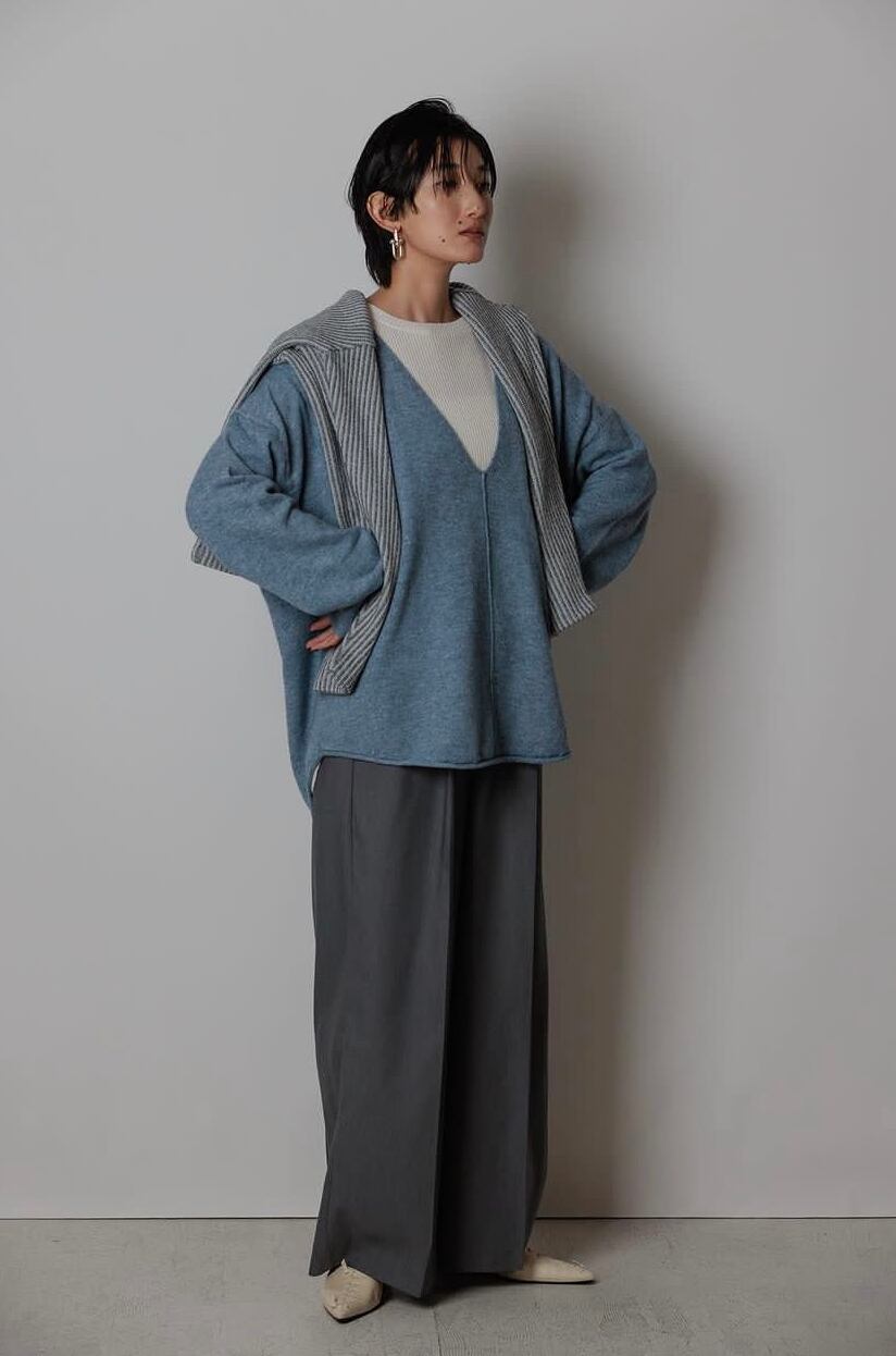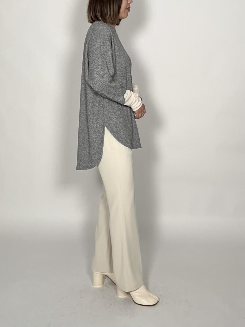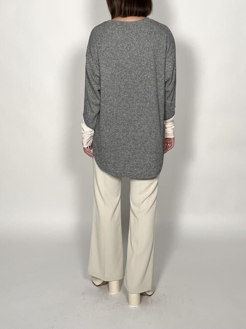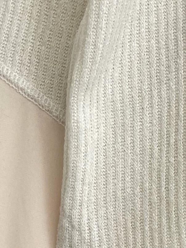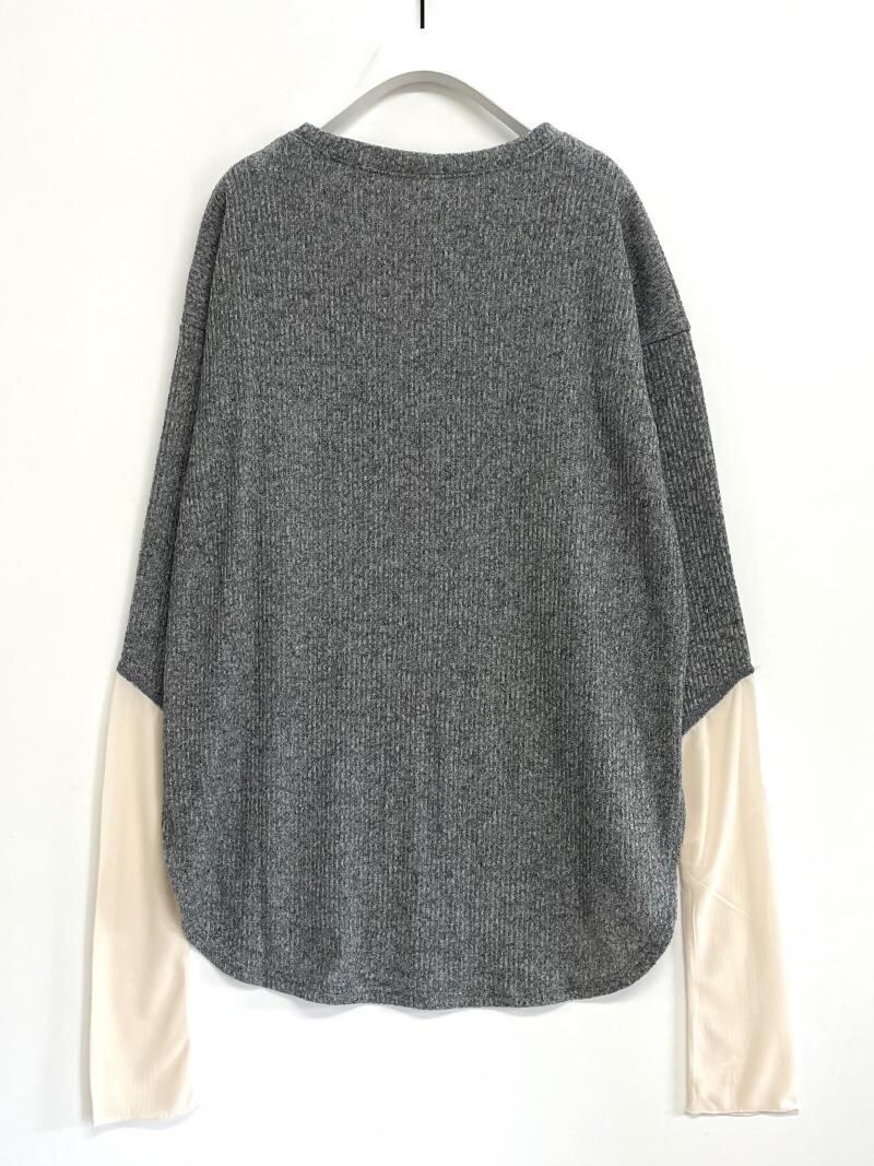温かみのあるニットソーとシアー感のあるカットソーを袖に施した、ドッキングしたPOです。