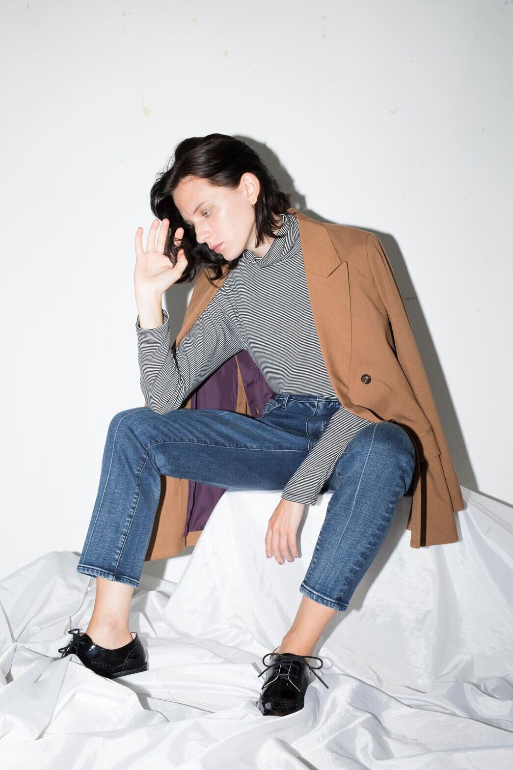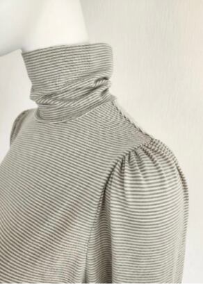 に拘ったプルオーバーです。肩先にギャザーを施しクラシカルな印象に仕上げました。 タイト過ぎないすっきりとしたサイジング、長め袖でレイヤードしやすいバランスに仕上げ ました。ワンピースやスウェットなどと重ねてコーディネートを楽しみながら防寒対策も兼 ねる実用的なアイテムです。