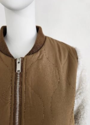 身頃は微光沢があるタフタ素材に薄中綿を挟んだキルティング仕様。袖には軽くて品があ
