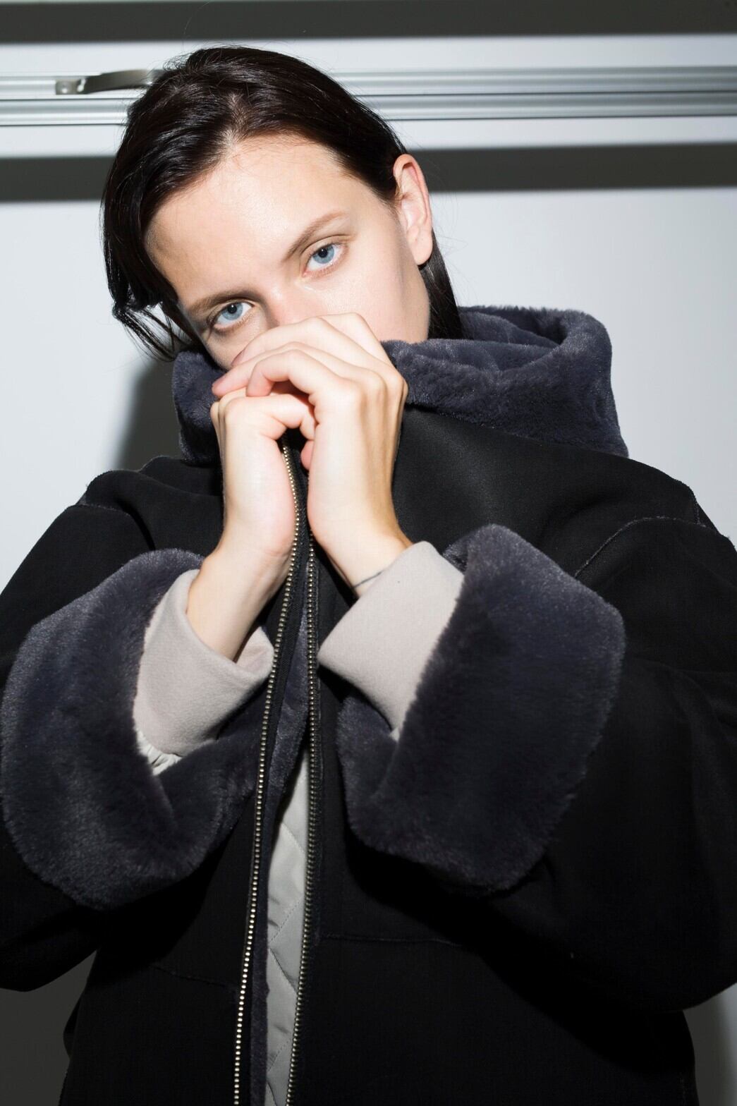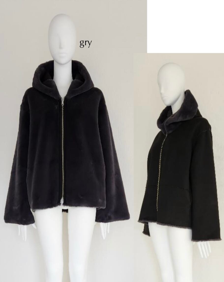 リバーシブルで着られる2way仕様のフード付きブルゾンです。スタイリングに合わせてファー面、ス
