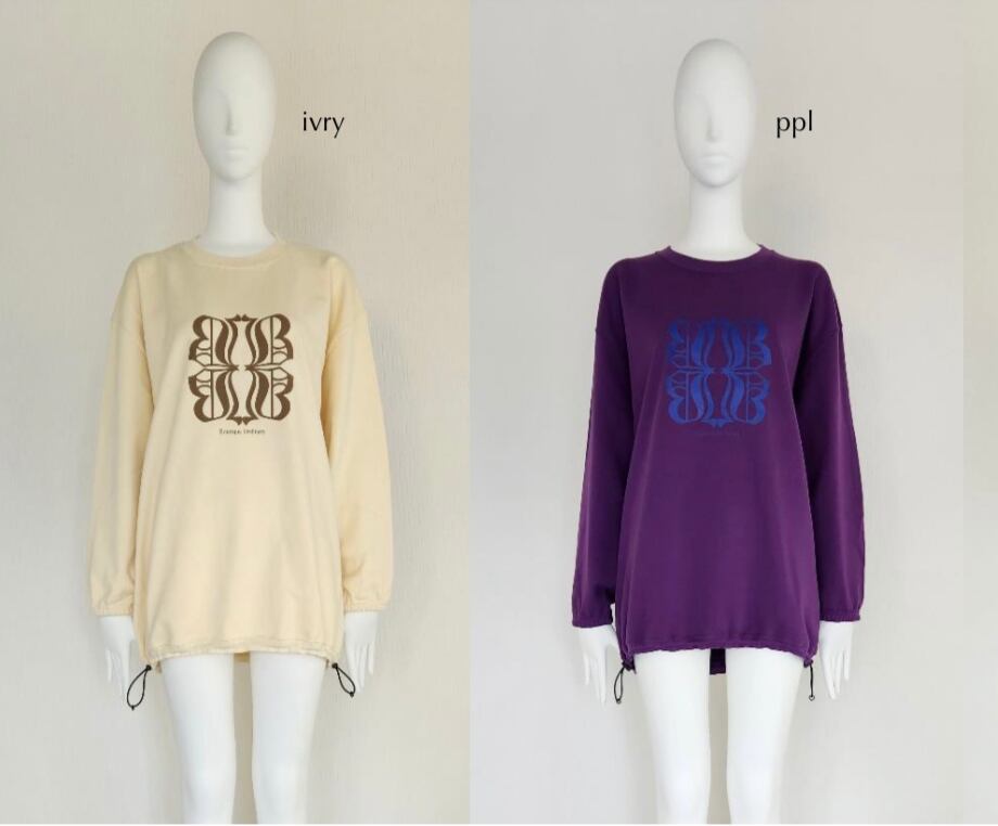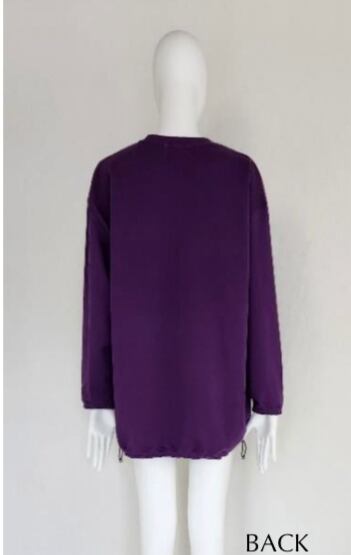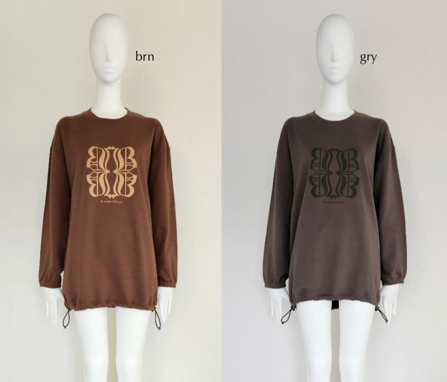 XXLサイズ裏毛トレーナーの裾にスピンドルを通したリメイク風アイテム。裾のスピンドルを 調整し、着丈やフォルムに変化を持たせる事ができるので、様々な着こなしをお楽しみ頂けま す。また、フロントにはBoutique OrdinaryのBOX ROGOを配置。シックな微配色がポイントです。