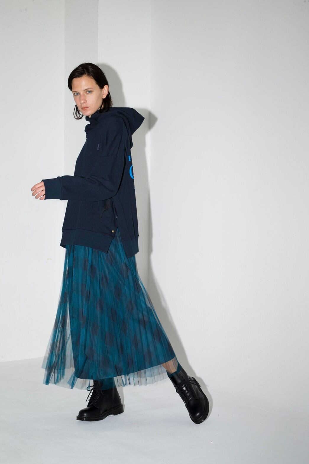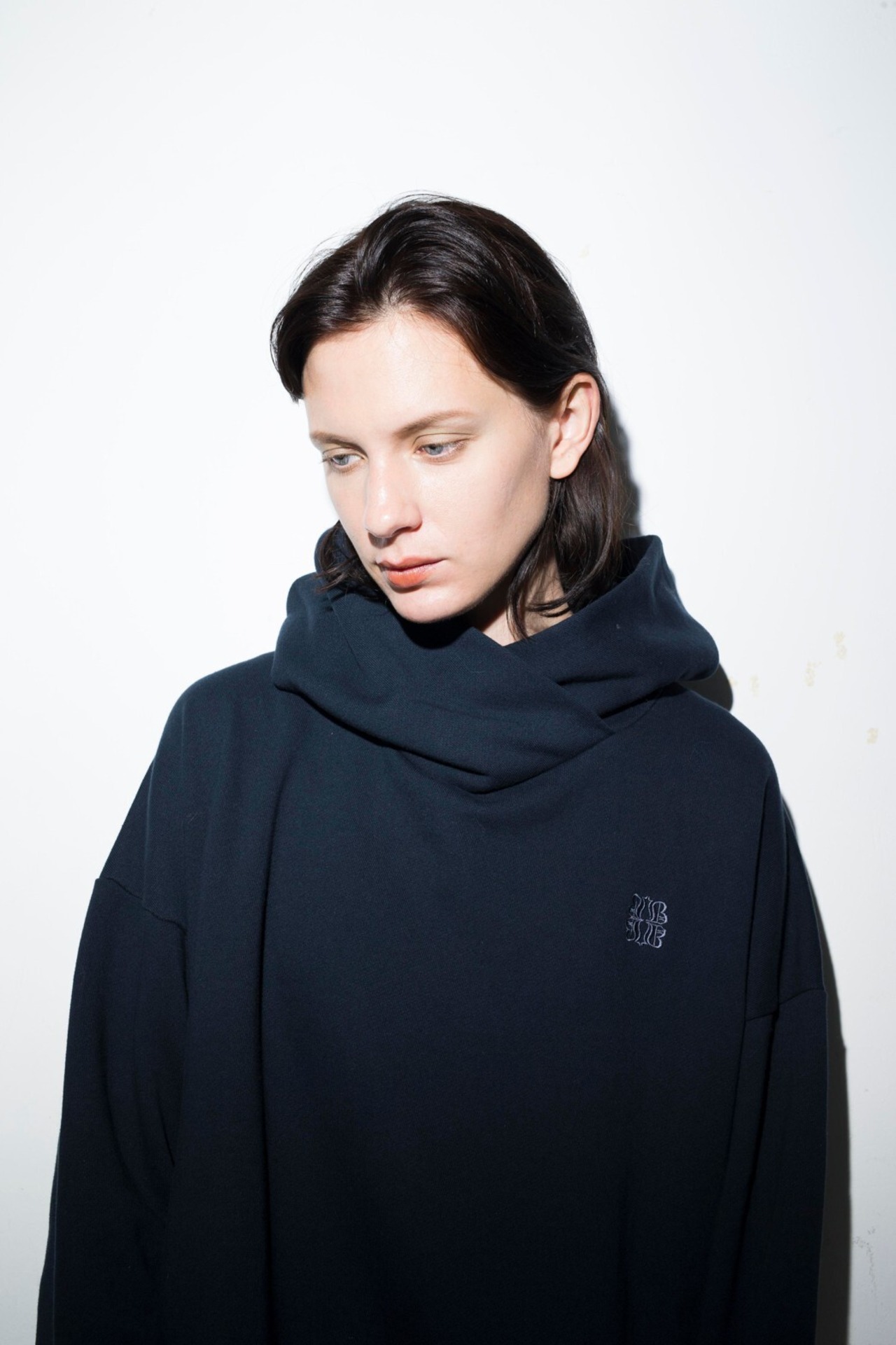 オーバーサイズの身幅とコンパクトな着丈が女性らしいプルオーバーパーカー。フードから