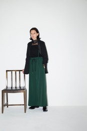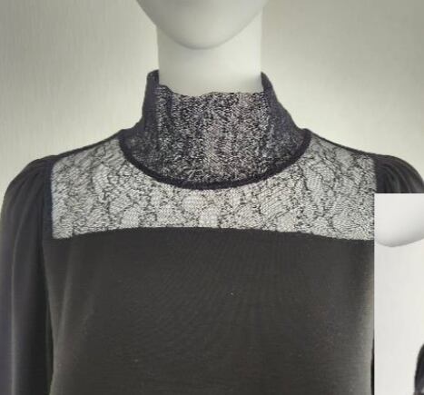 繊細なシアーレースとジャージを掛け合わせ、オケージョンシーンを意識したエレガントなハ イネック・プルオーバーです。レースの透け感が美しく、さりげなくデコルテをカバー。過度