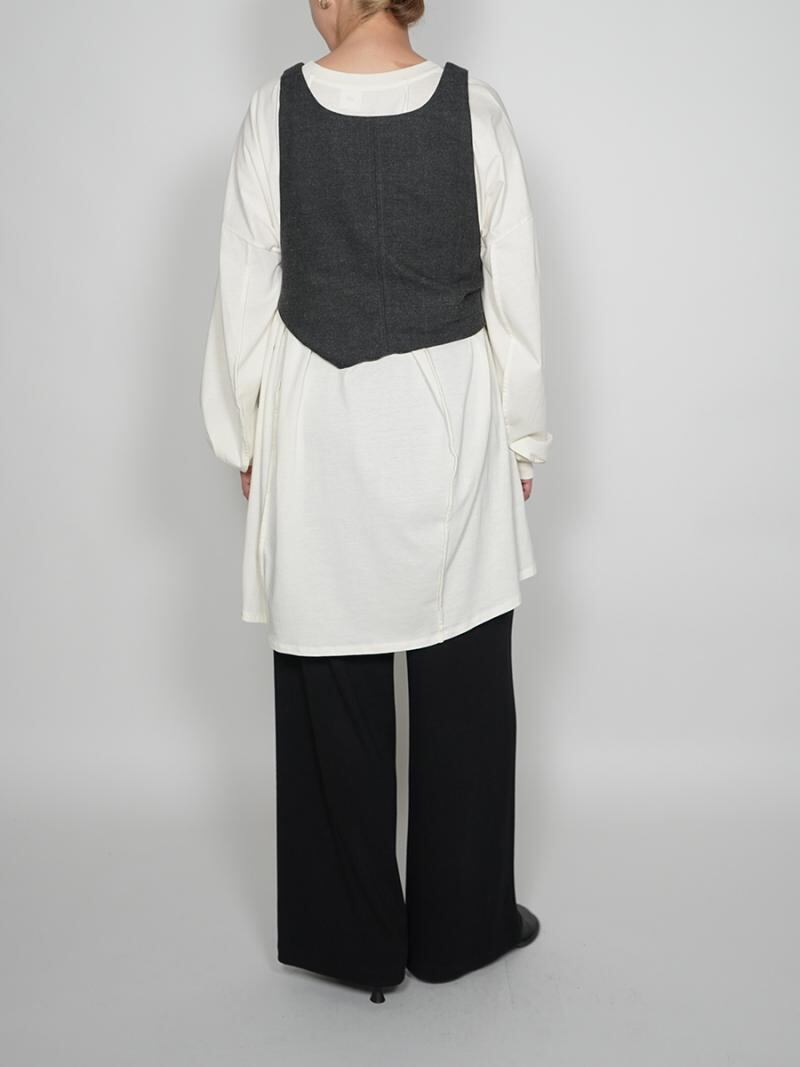 ウール混のヘリンボーン生地を使用したビスチェプルオーバーです。
