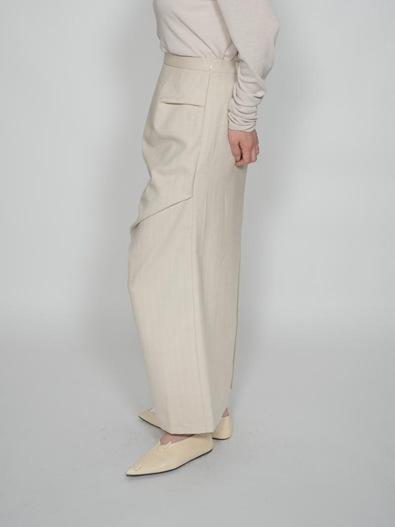 ウール混のヘリンボーン生地を使用したロングスカートです。
