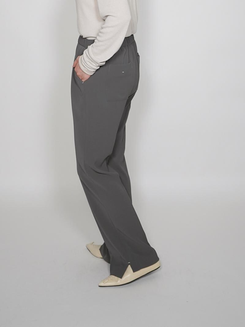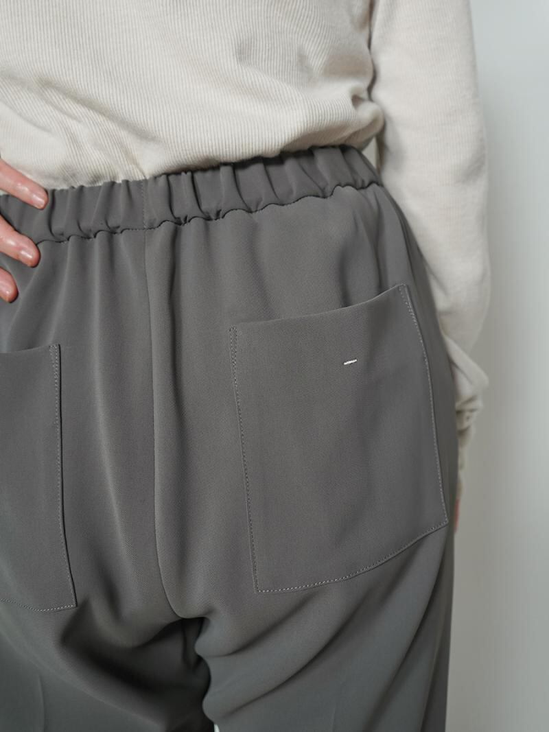 ぷるんとした弾力と落ち感が特徴のオールシーズンで着用いただけるポリエステル生地を使用したストレートシルエットのイージーパンツです。