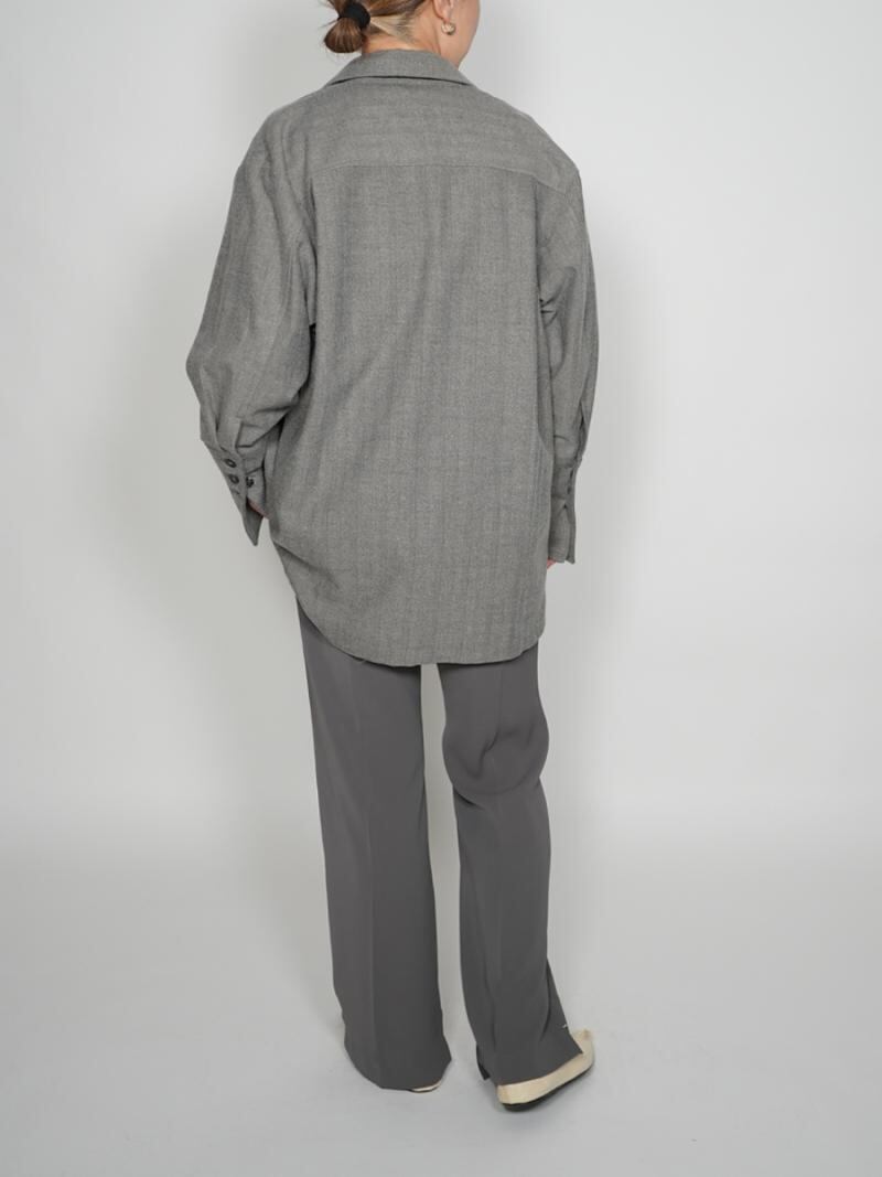 裾は前が長く後が短い段違いになっていて、パンツの裾を引きずりにくい、かつ足長効果を生むデザインです。