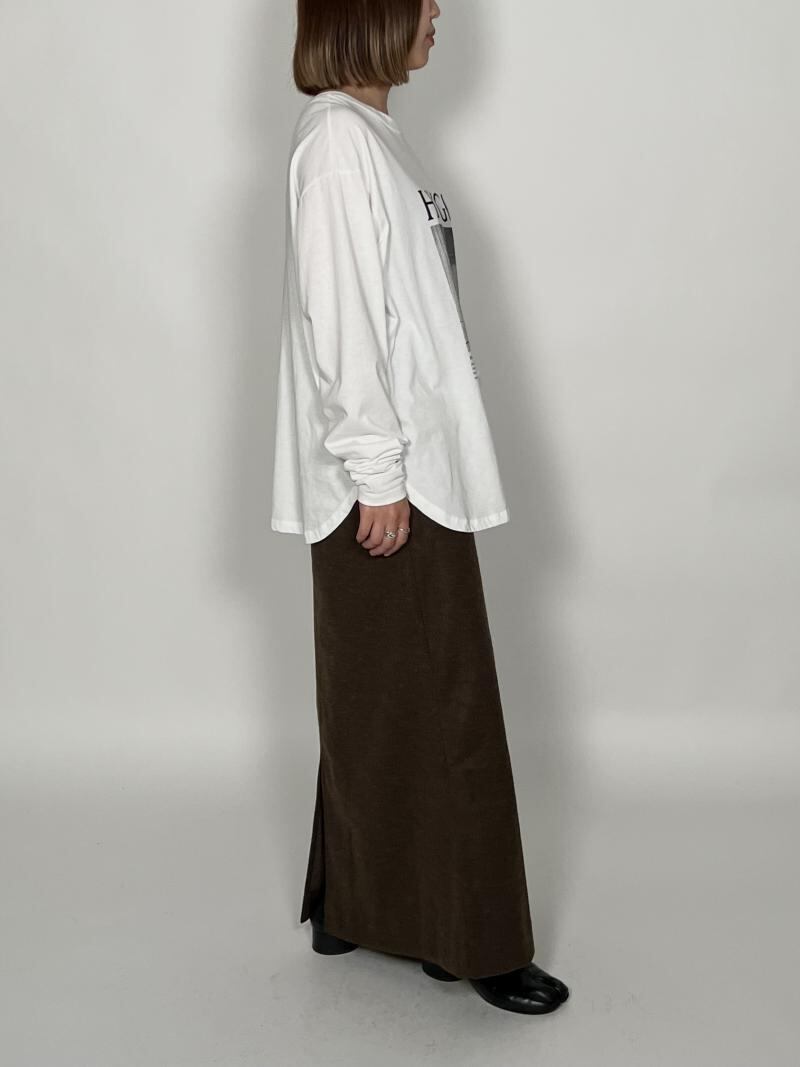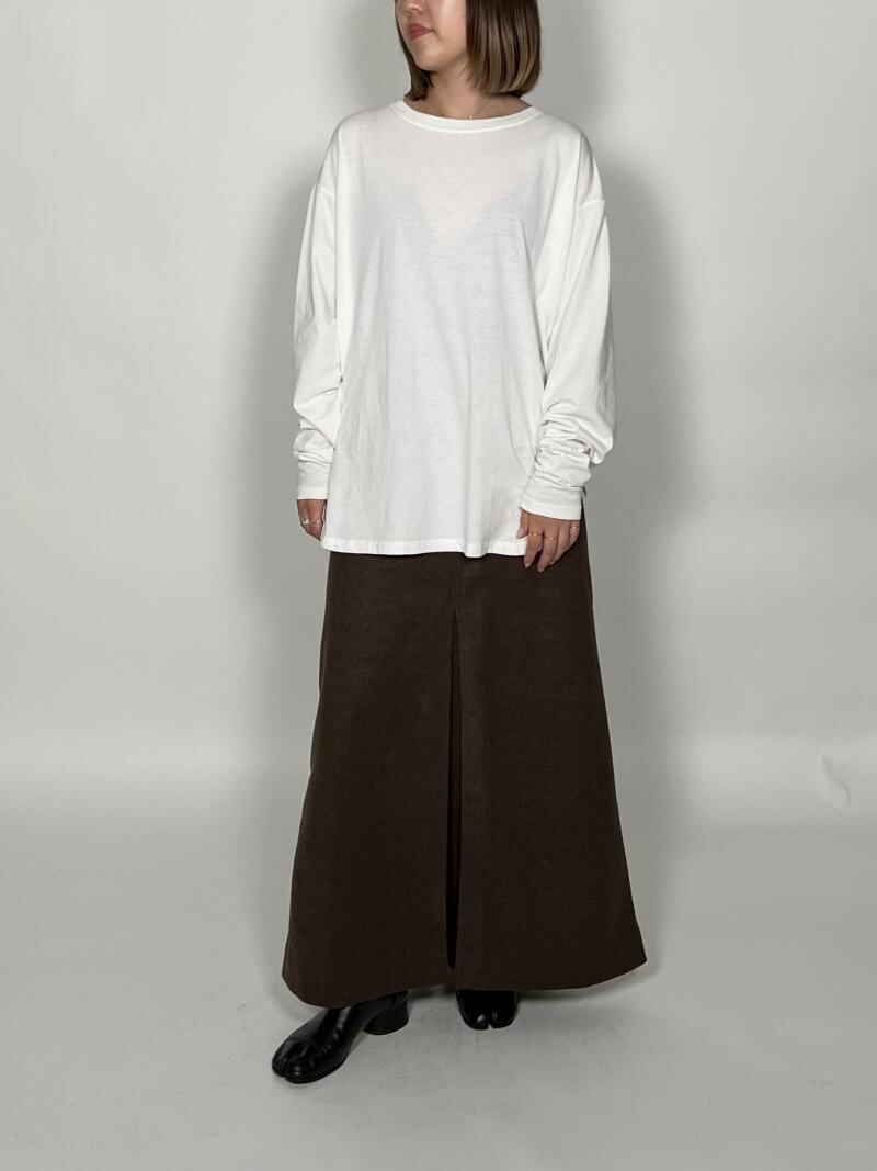 身頃はルーズなサイズ感にし、袖丈を長め設定にしているのがポイントです。着用頂くと、クシュクシュと袖口にたゆむシルエットがルーズな抜け感を出してくれます。