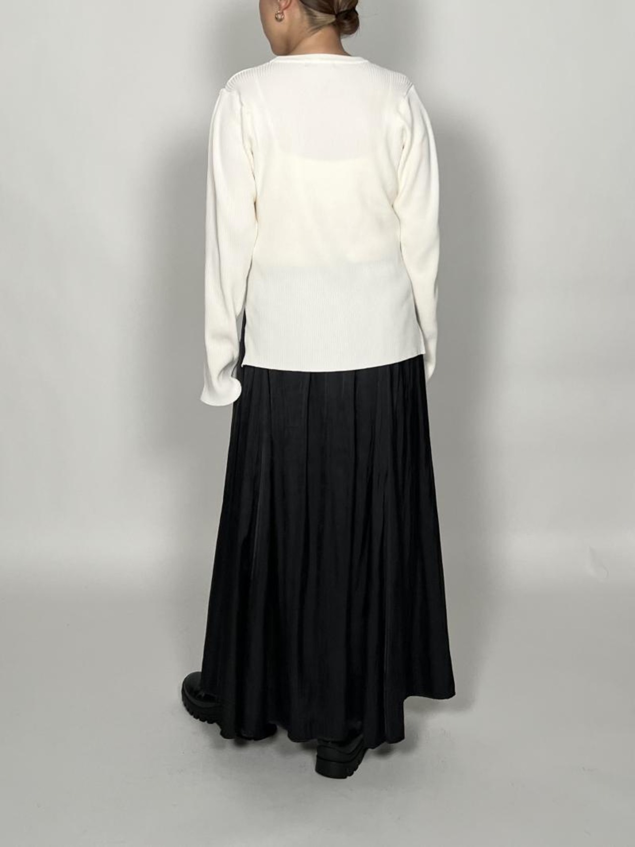 袖山のタックデザインがアクセントに、身体に優しく沿うシルエット設計で女性らしい1着に仕上げました。ロングシーズン着用できる肉感と素材感もポイントです。