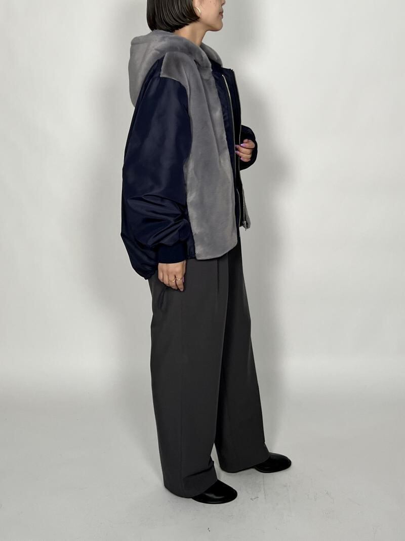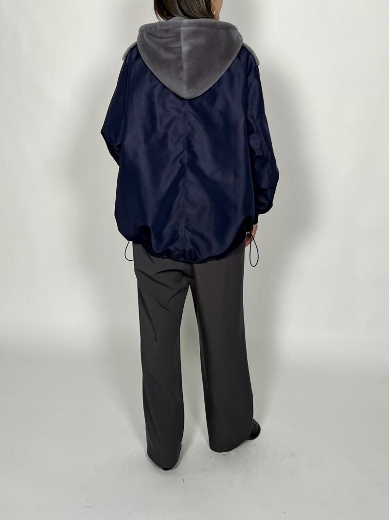ファーと、ナイロン素材の異素材が効いたフードブルゾンです。
