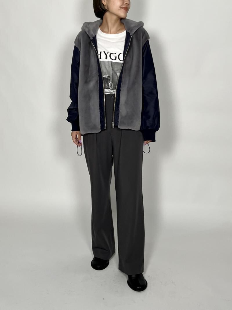 上品な見え方のミニファーを使用し、ナイロンのスポーティ素材とドッキングする事で、素材感の違いを楽しめるブルゾンです。