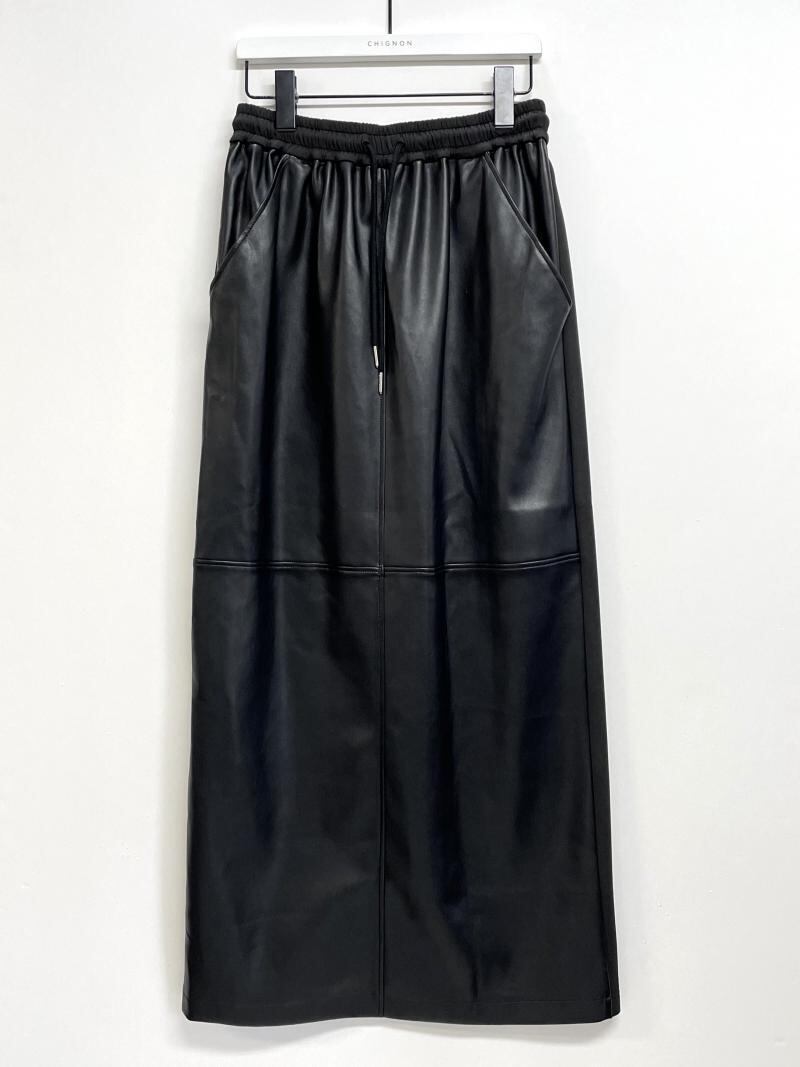 予約販売【 chignon 】フェイクレザー切替スカート [2235-252KK] 12月上旬お届け