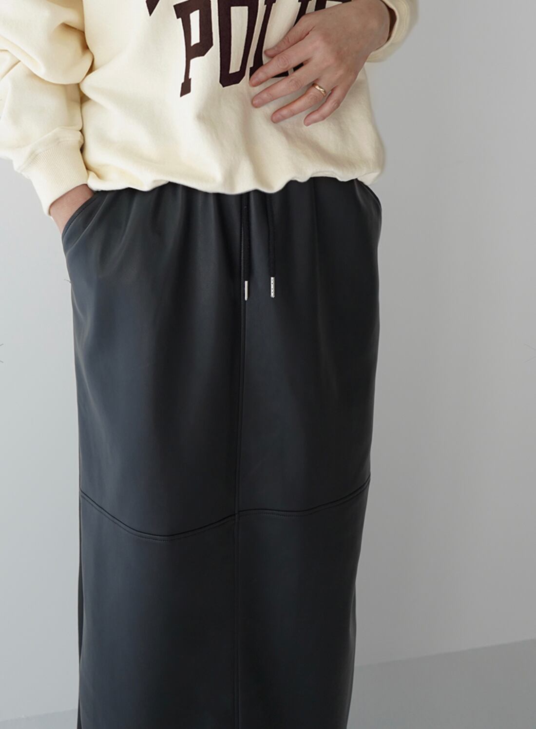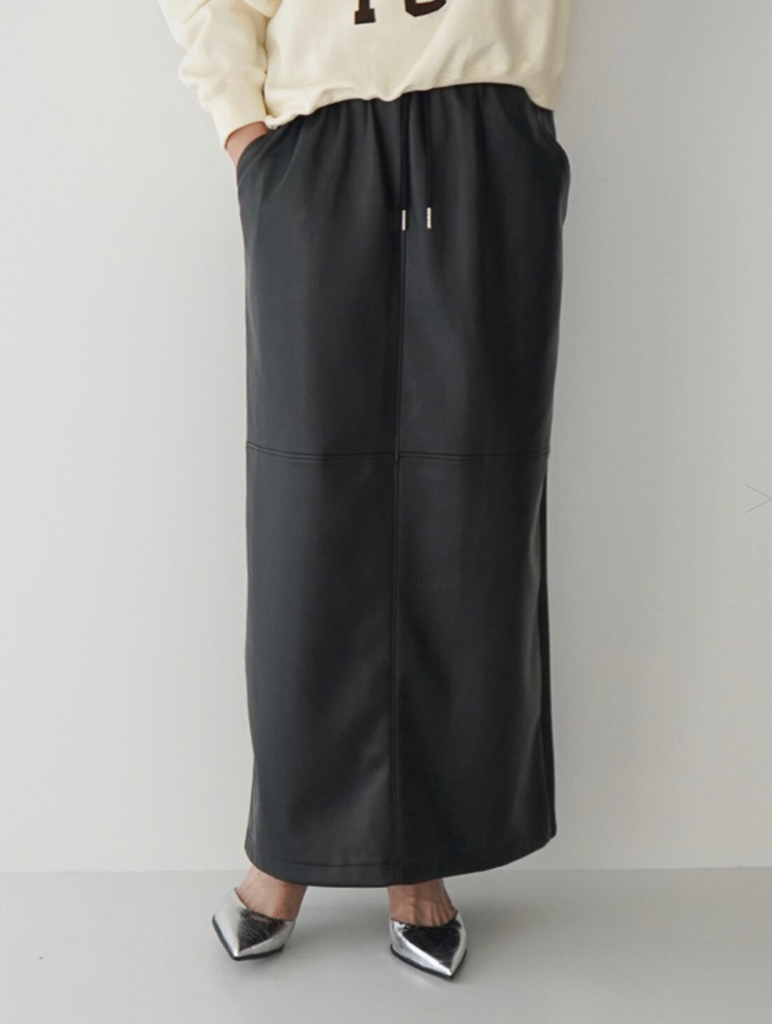 フェイクレザー切替スカート