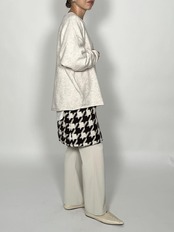 同素材のジャケットとのコーディネイトや、リブタイツ、ブーツなどとのコーディネイトでトレンドのスタイリングになります。