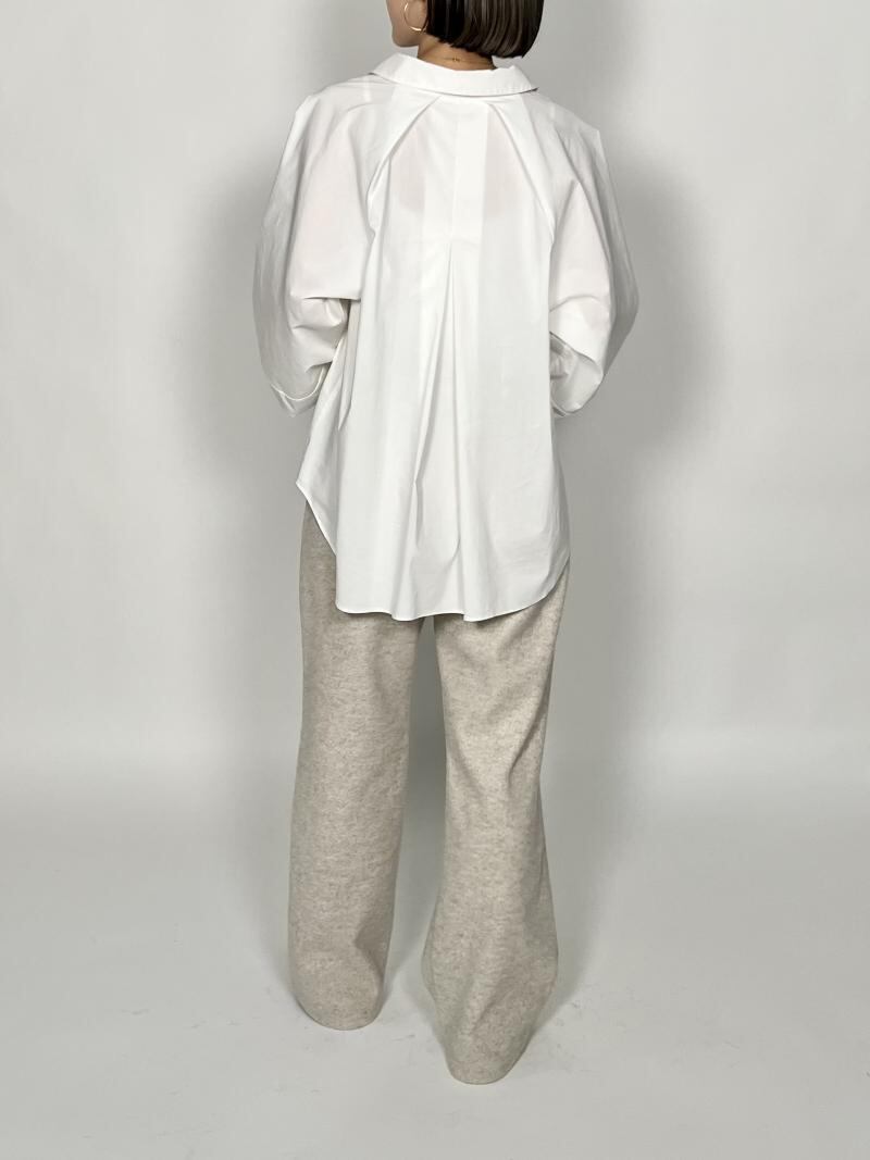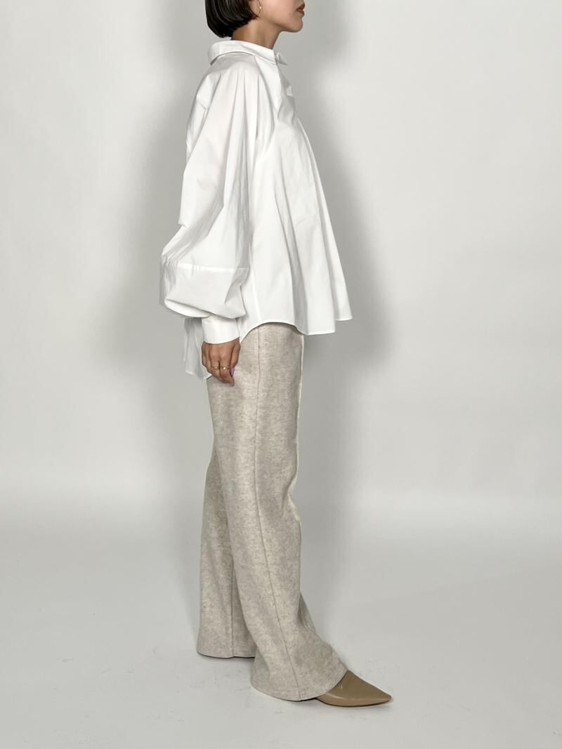 ハンサムな印象のシャツ地を使用し、トレンドの袖ボリュームデザインを入れたシャツブラス。
