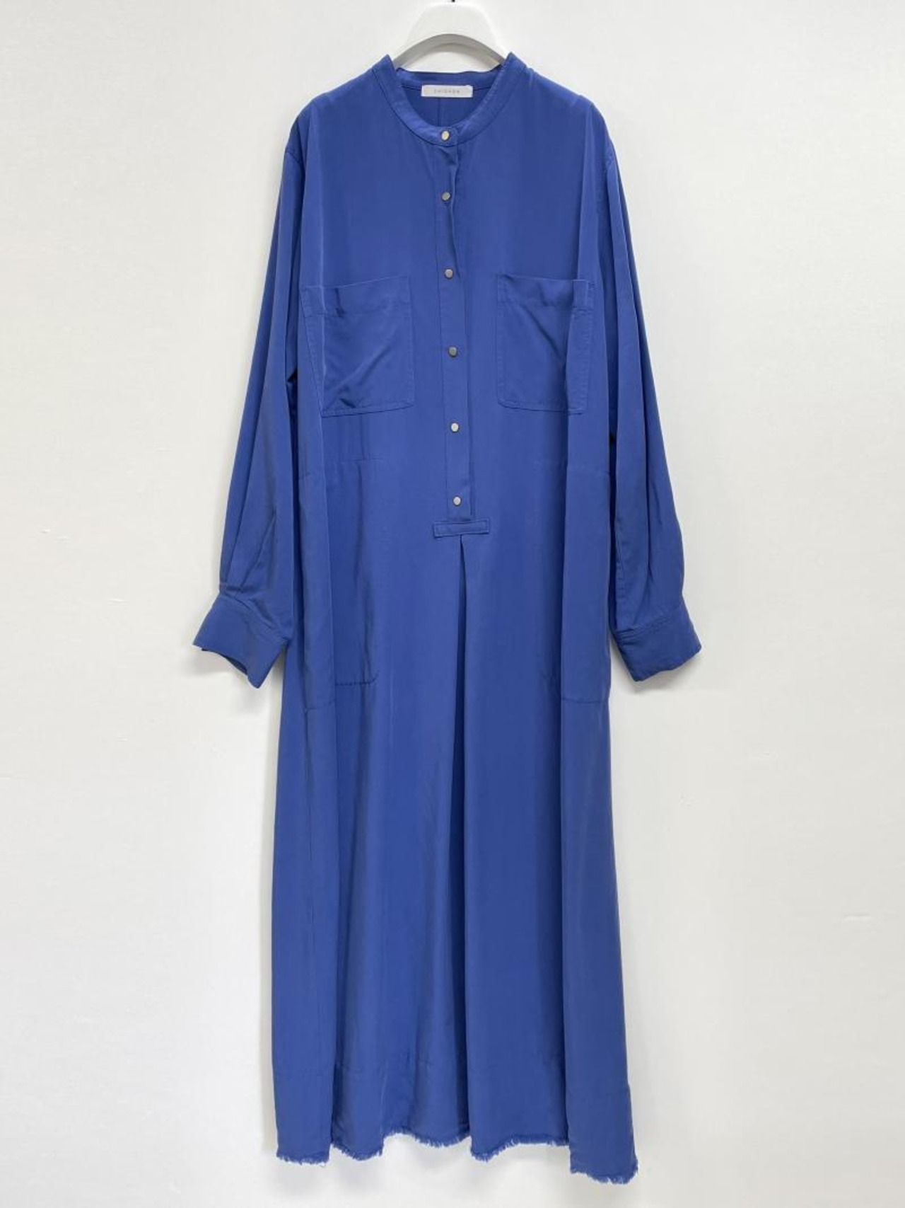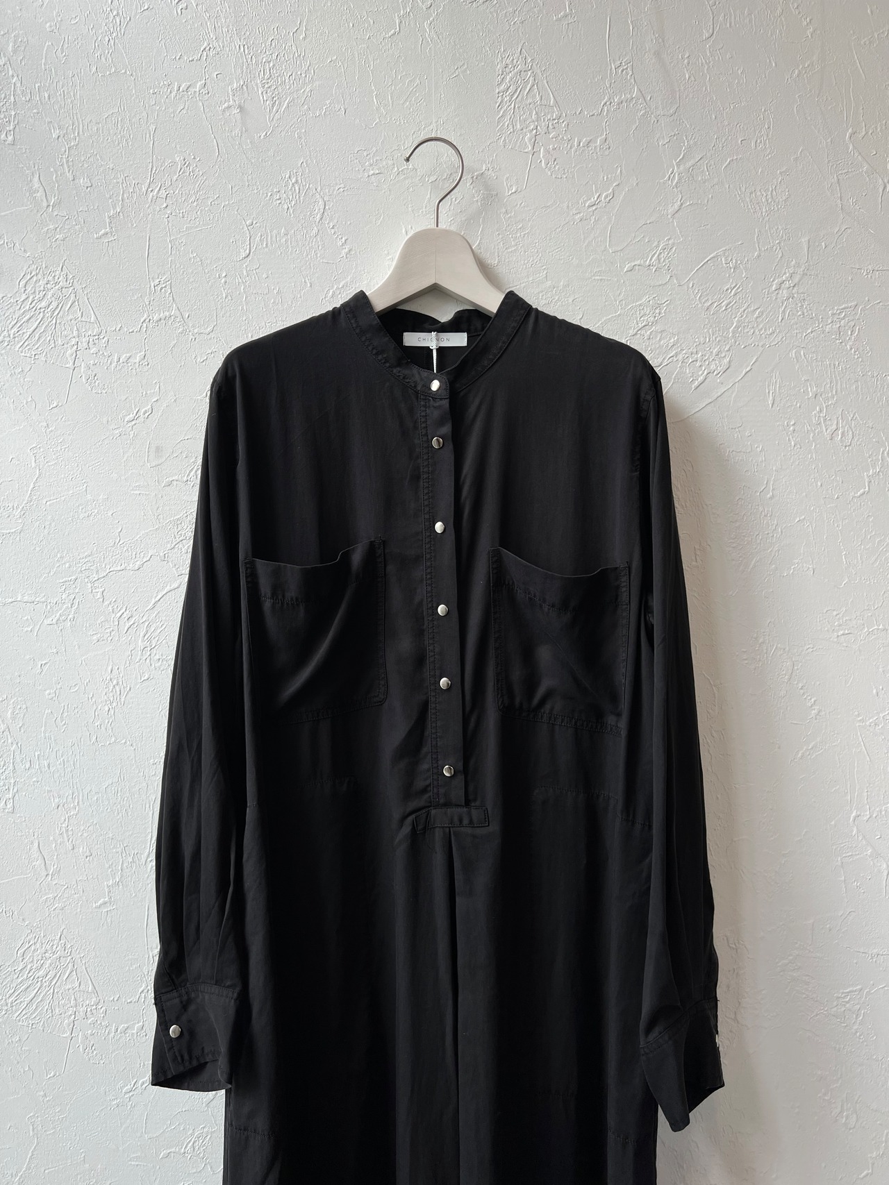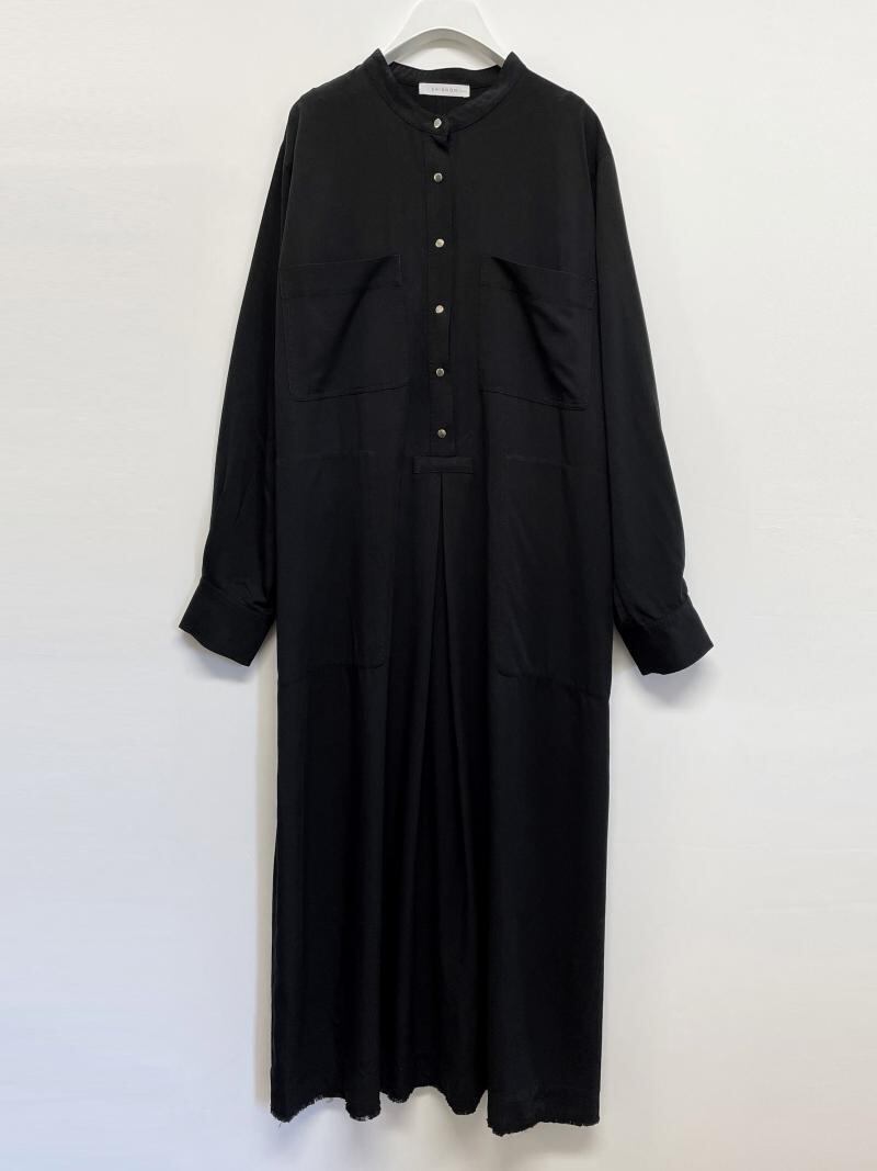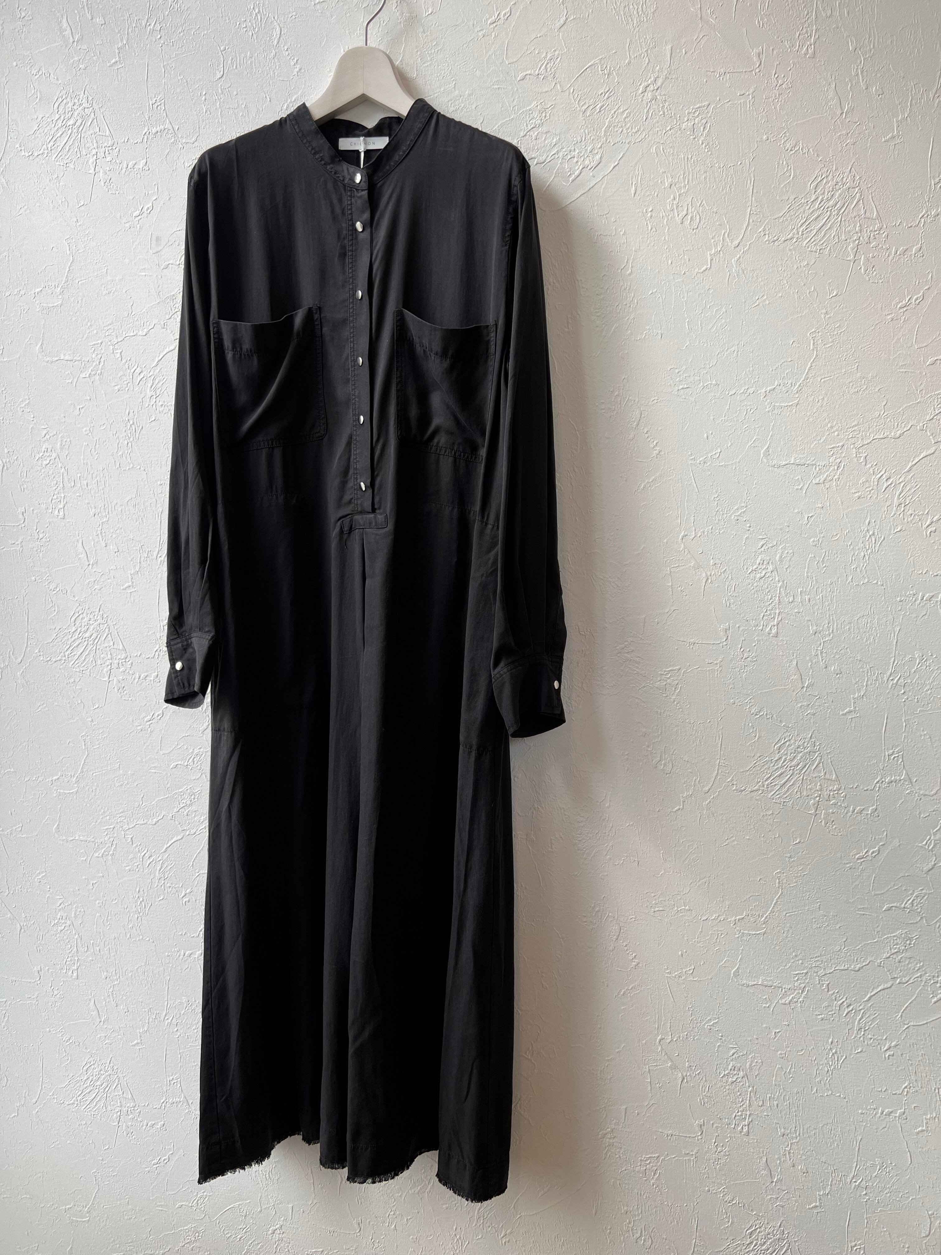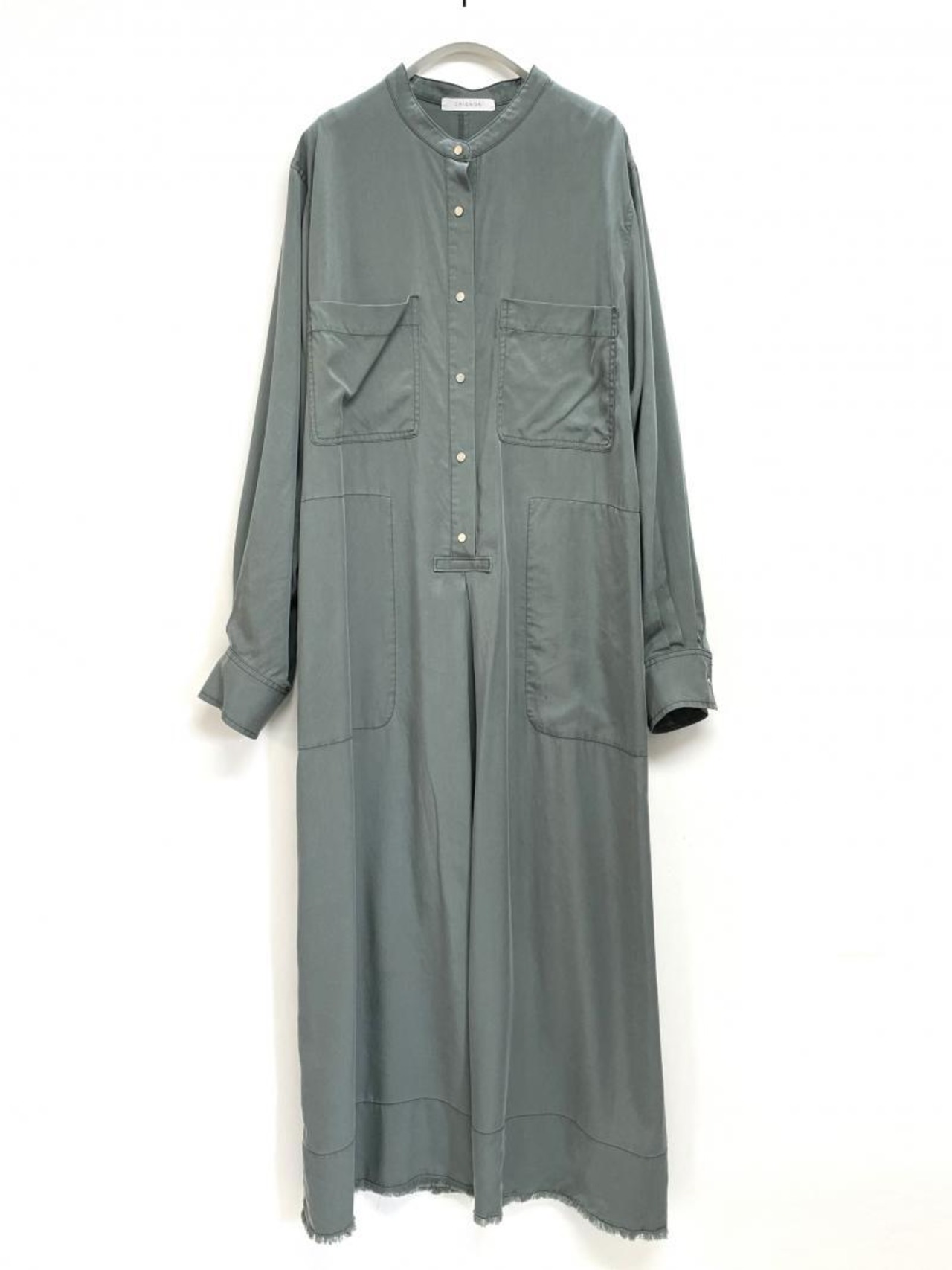 テンセルの落ち感あるツイル素材を、ワークテイストのワンピースにしました。