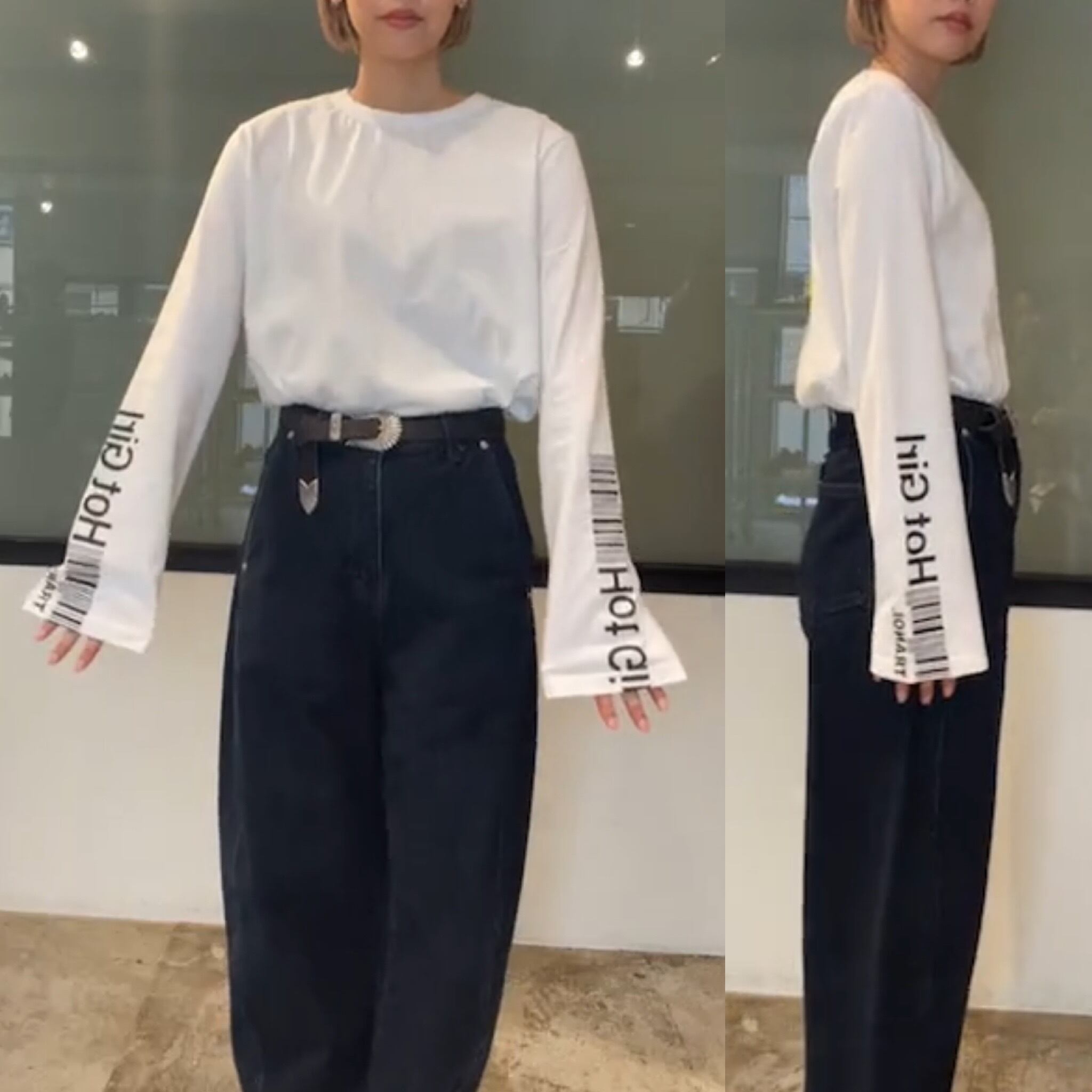 一枚で着ても、袖が見えるようレイヤードするのもお勧めコーデです!