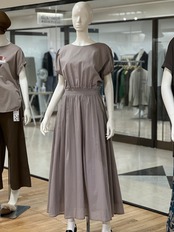 ウエストのシャーリングデザインが細見えさせてくれるワンピースです!
