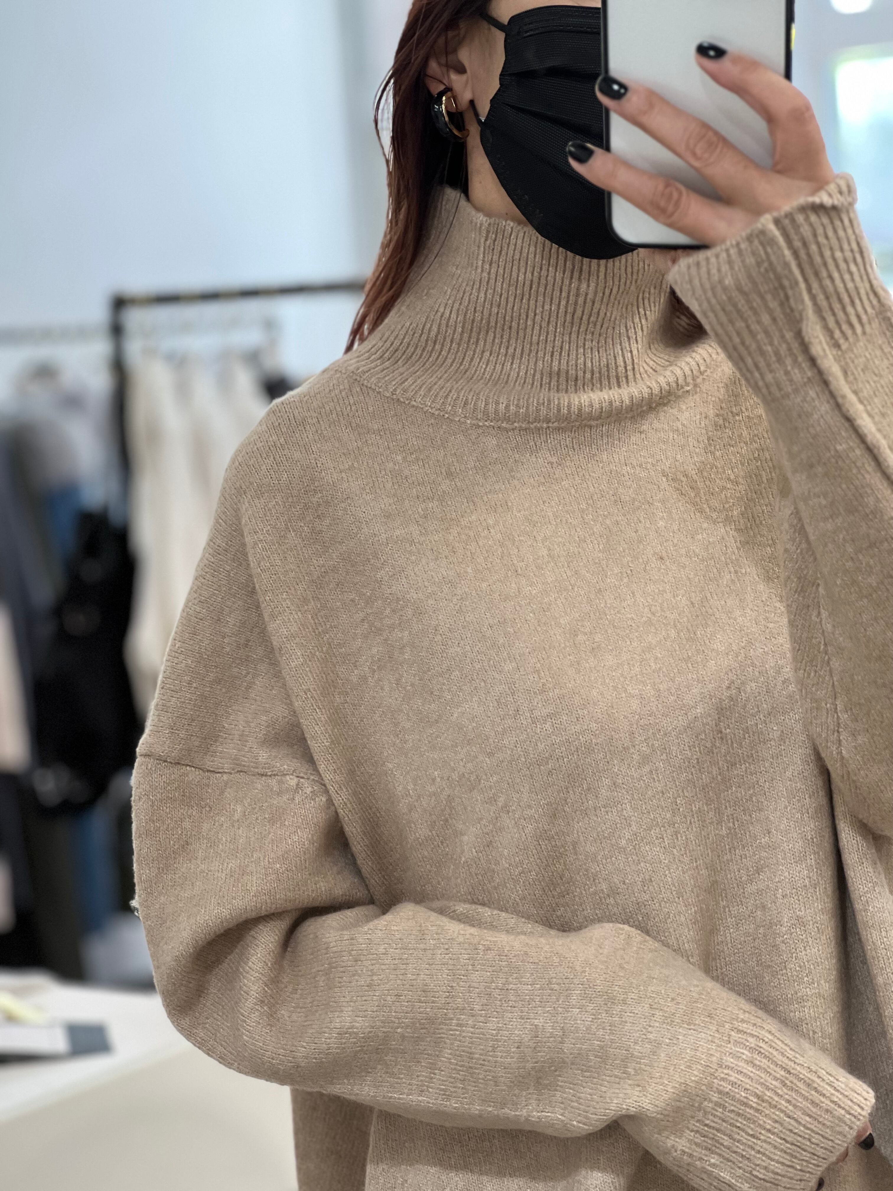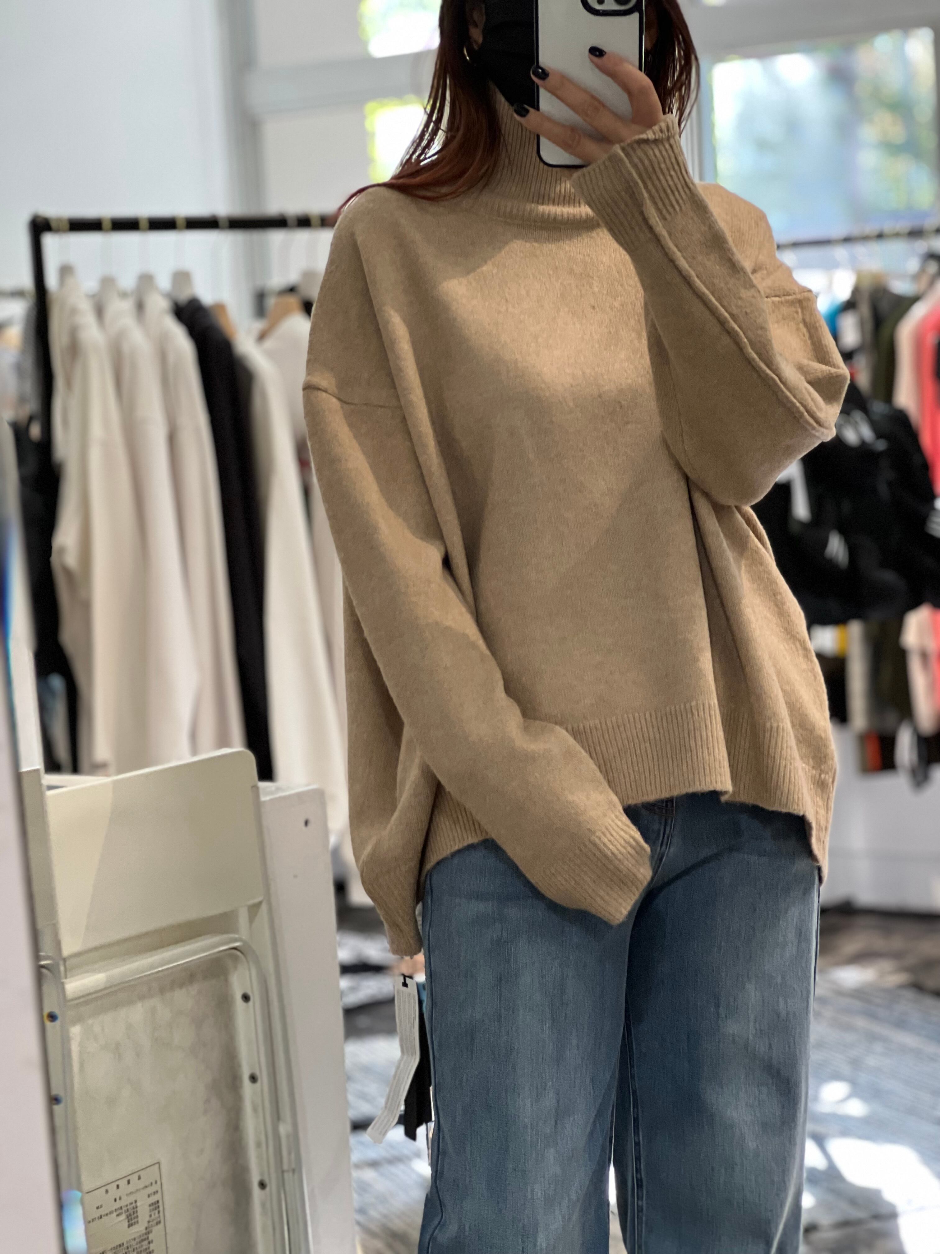 予約販売【 MICALLE MICALLE 】定番 back slit highneck knit (MRH113NAD)