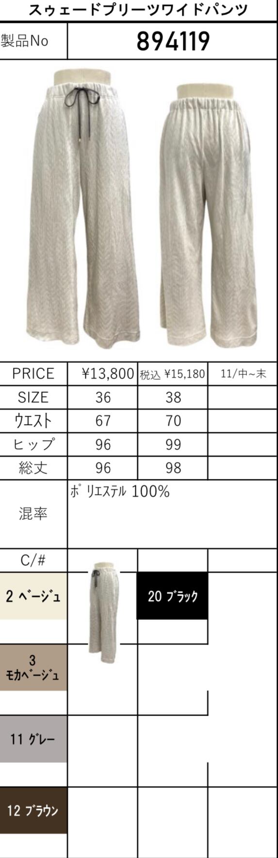 予約販売【 ayane 】スウェードプリーツワイドパンツ(894119)11月お届け