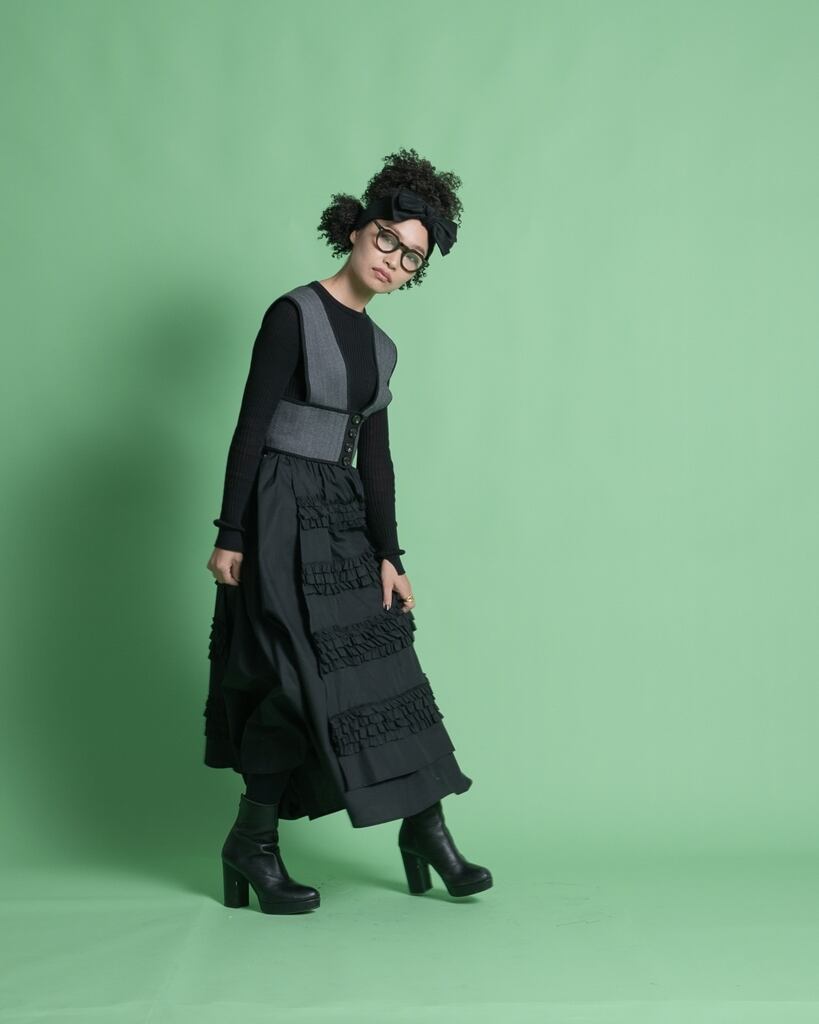 冬はブーツで、春夏はサンダルやオックスフォードのシューズなど少しマニッシュに合わせてもらうと普段着として使ってもらえると思います。