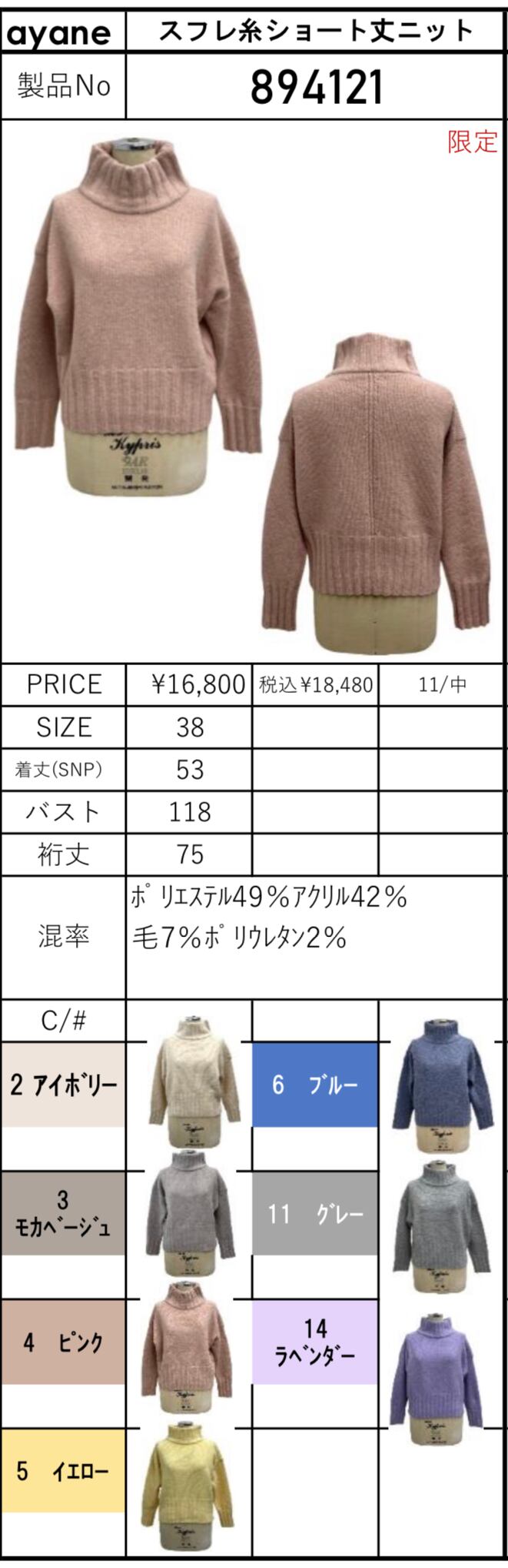 数量限定★予約販売【 ayane 】スフレ糸ショート丈ニット(894121)11月お届け
