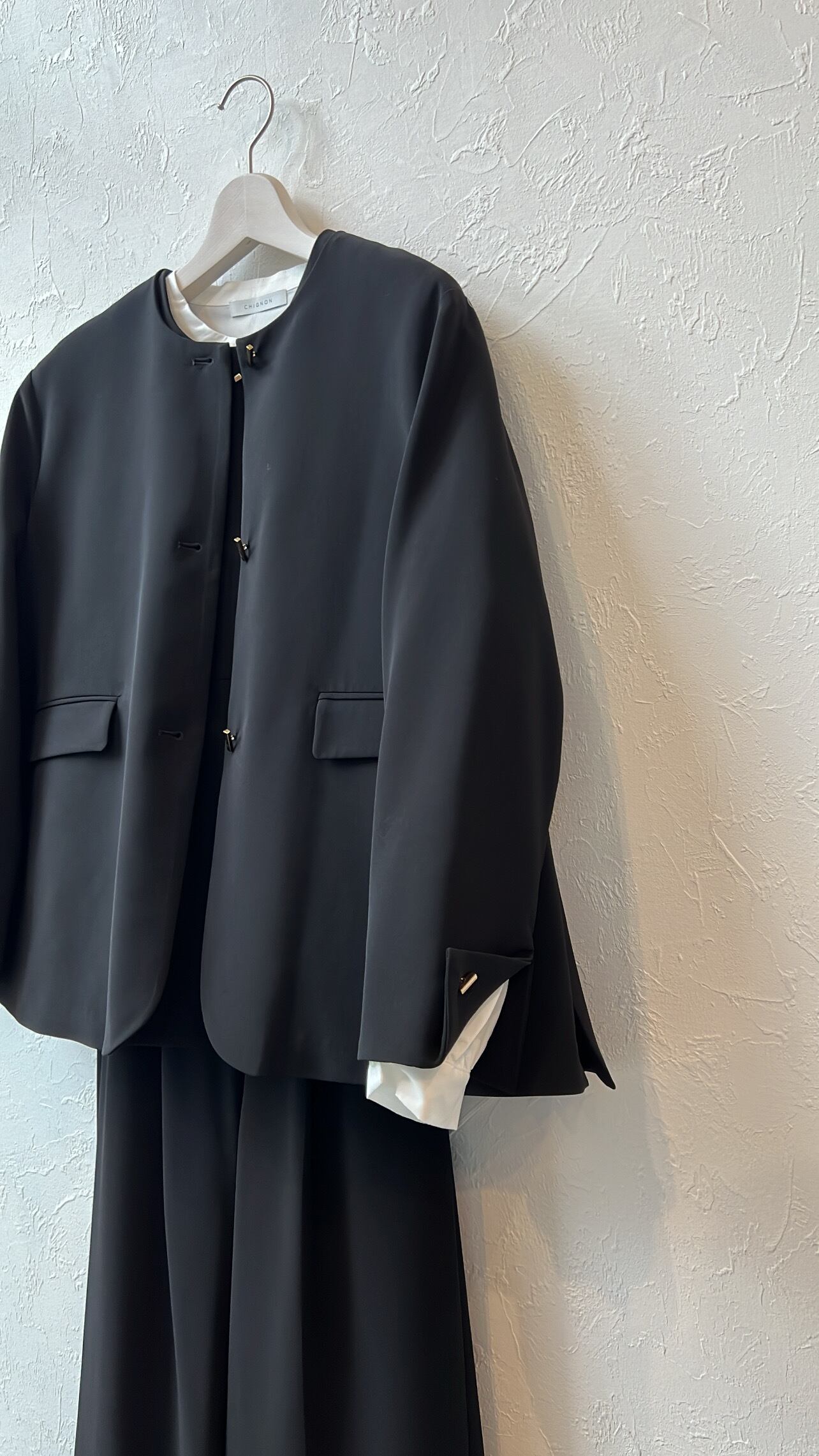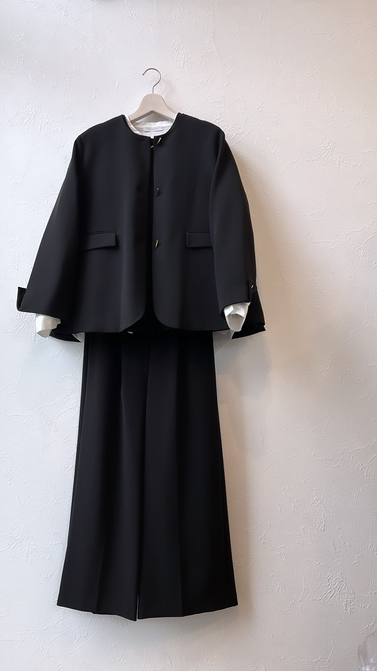 同素材のパンツやジャンスカなどともスタイリング可能でセットアップでセレモニーなどにも対応できるシリーズです。