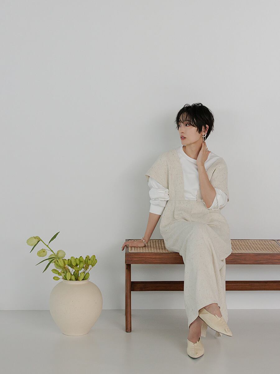 軽さが特徴のツイード素材をセレクトしたきちんと感のあるワンピース。